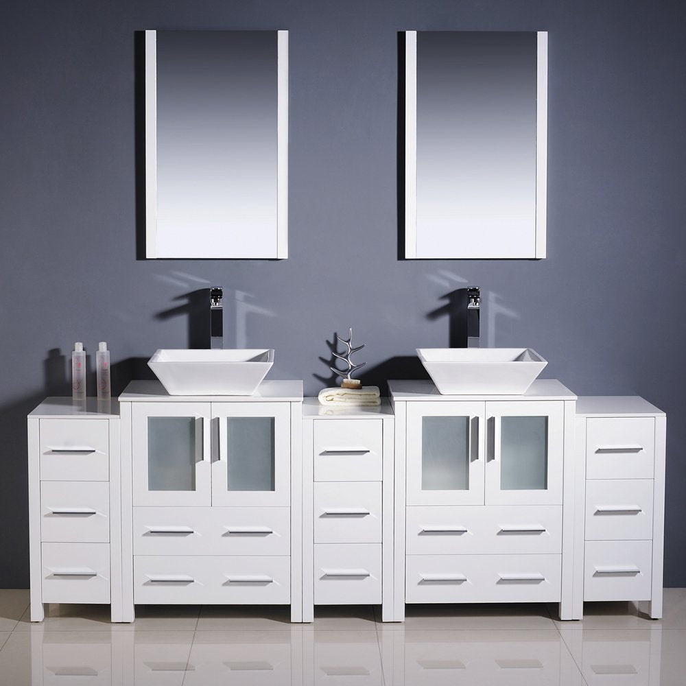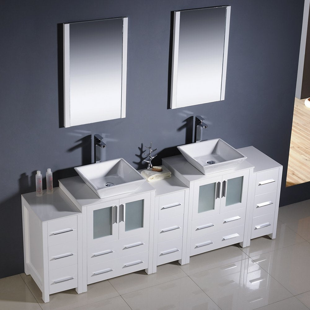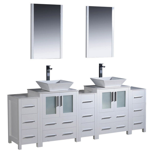 Fresca FVN62-72WH-VSL Fresca Torino 84" White Modern Double Sink Bathroom Vanity w/ 3 Side Cabinets & Vessel Sinks