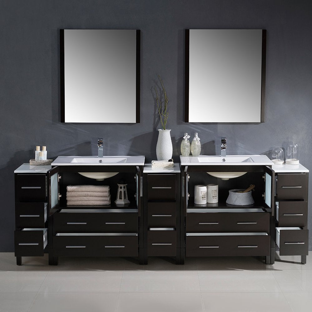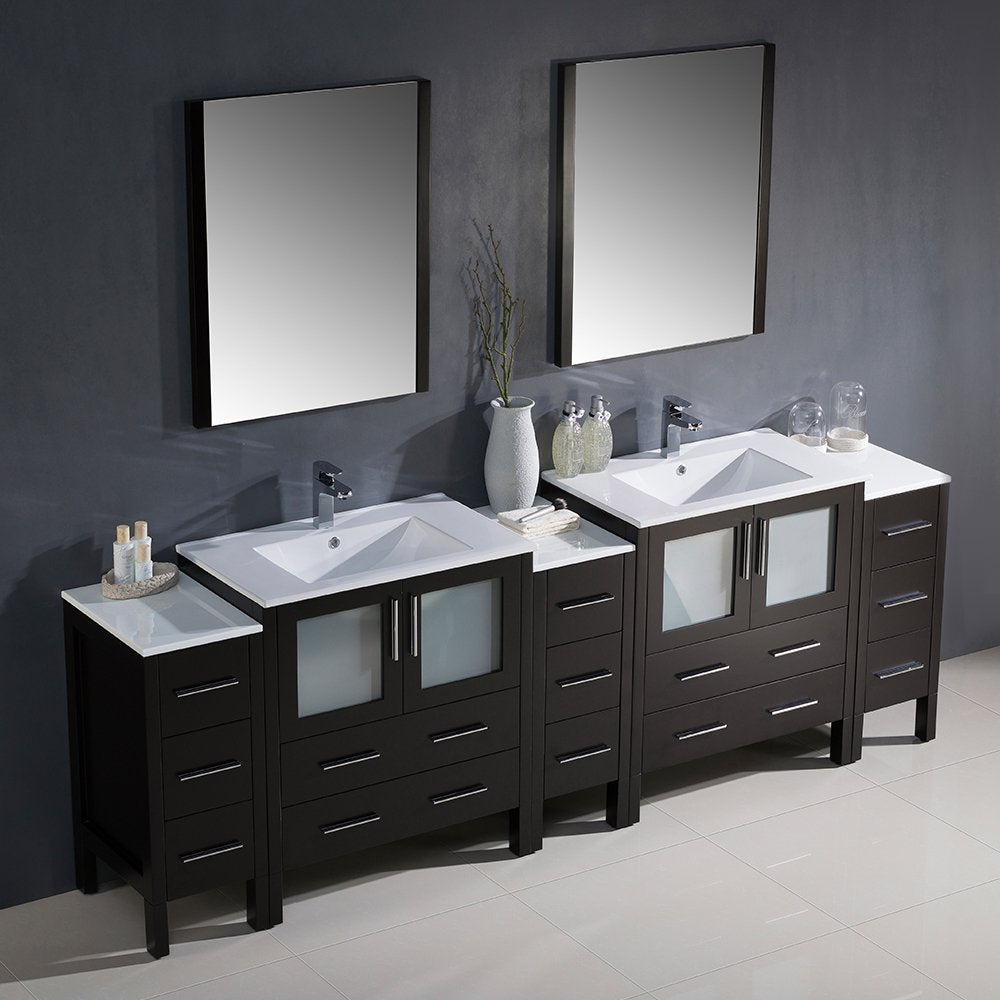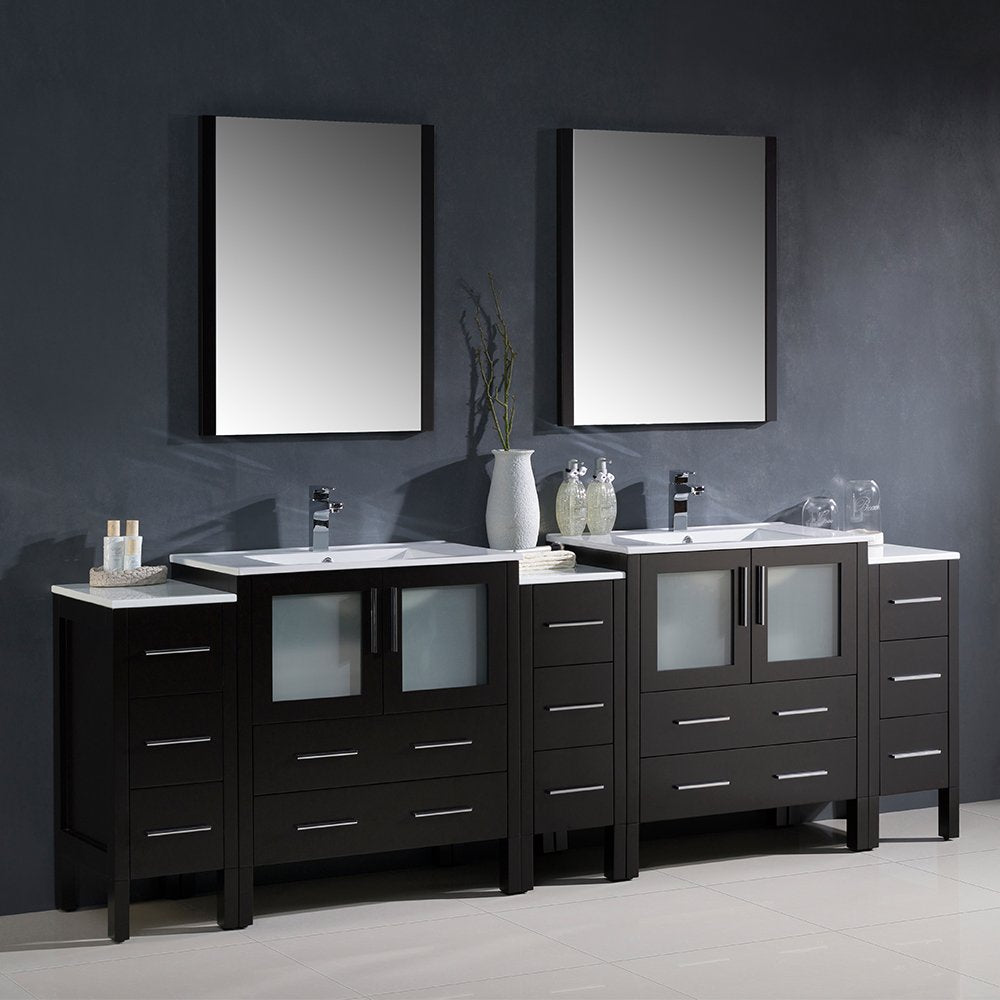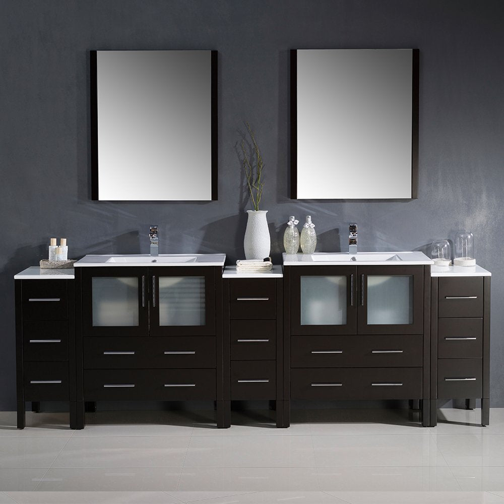 Fresca FVN62-96ES-UNS Fresca Torino 96" Espresso Modern Double Sink Bathroom Vanity w/ 3 Side Cabinets & Integrated Sinks