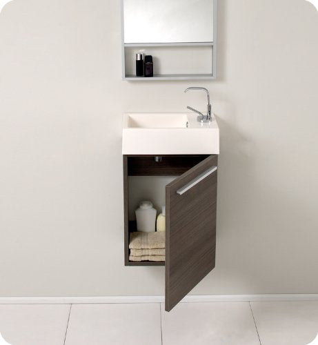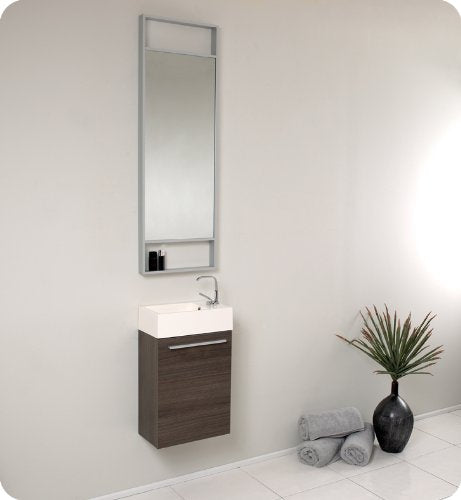 Fresca FVN8002GO Fresca Pulito 16" Small Gray Oak Modern Bathroom Vanity w/ Tall Mirror