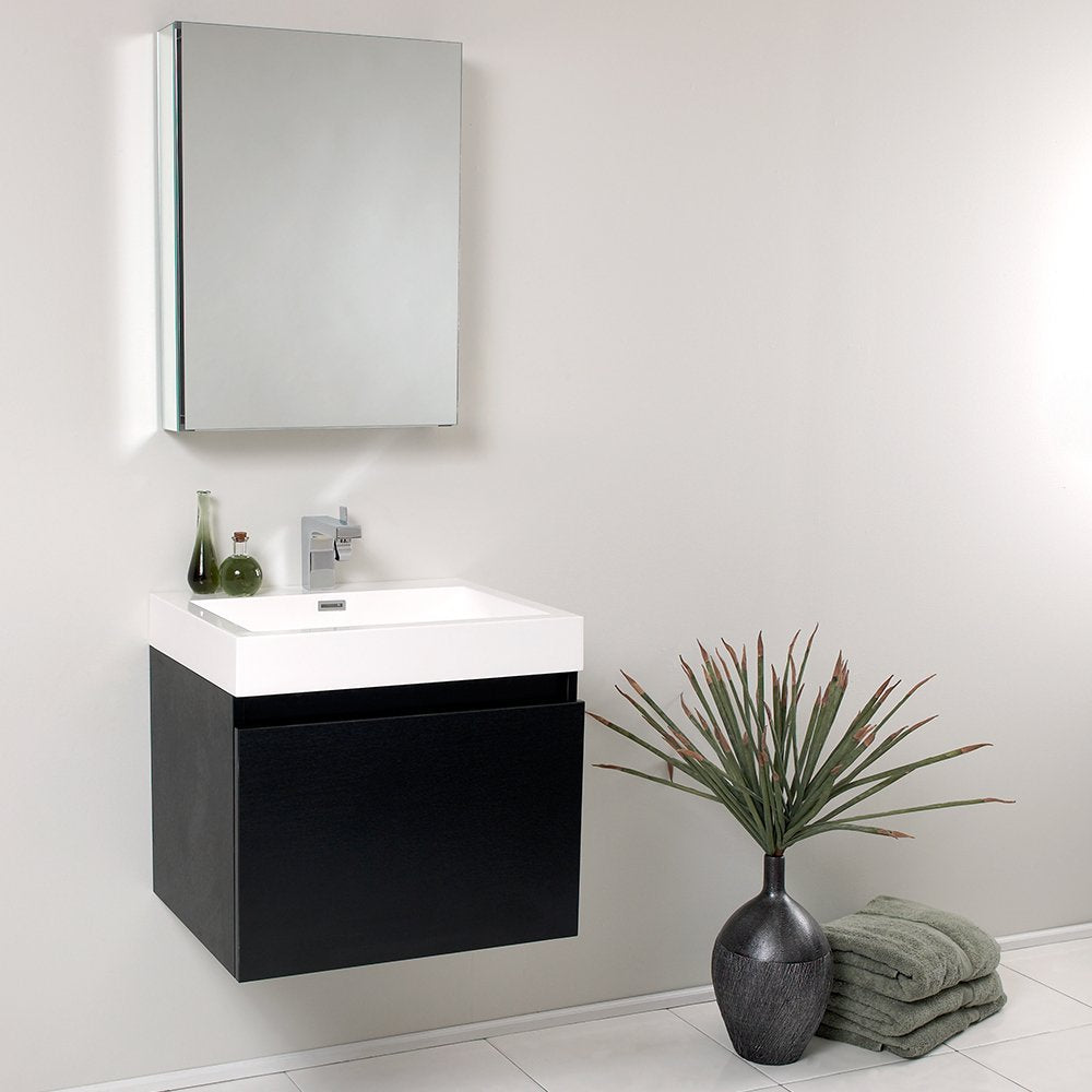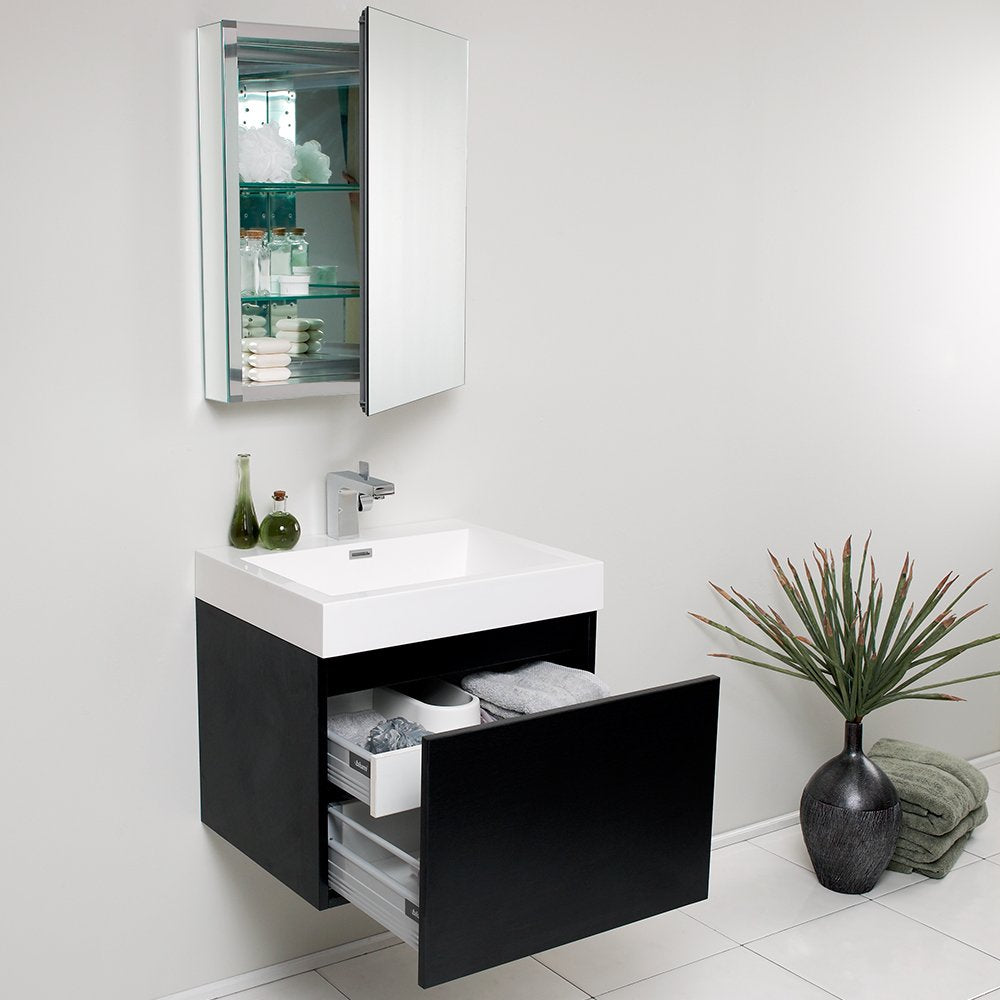 Fresca FVN8006BW Fresca Nano 24" Black Modern Bathroom Vanity w/ Medicine Cabinet
