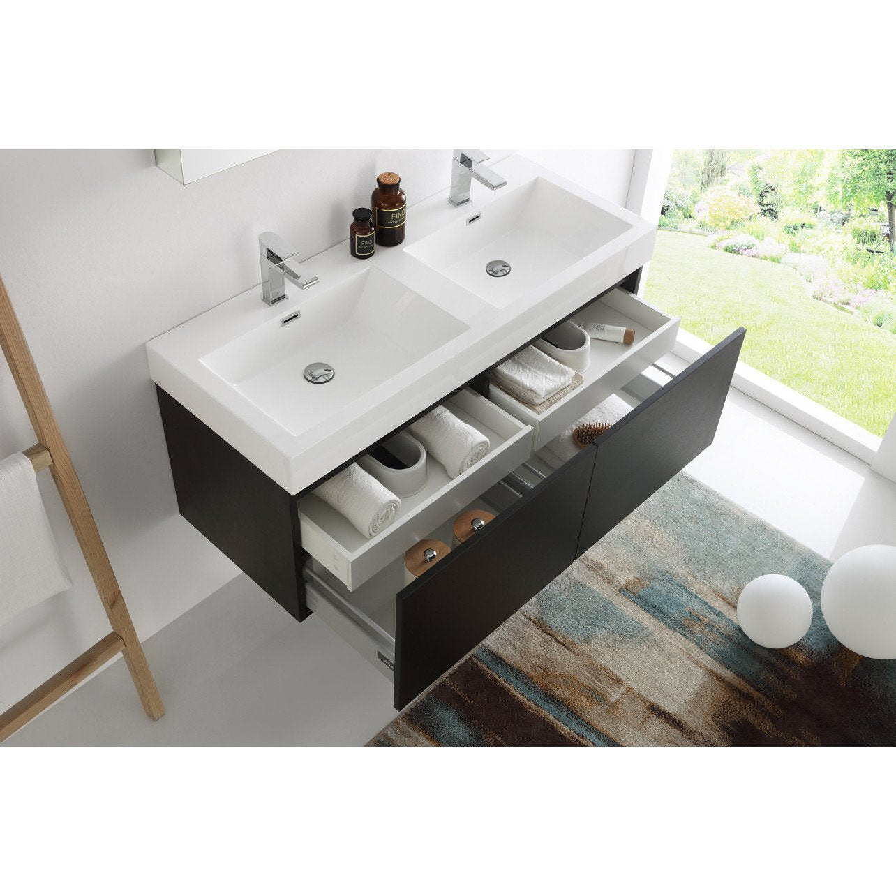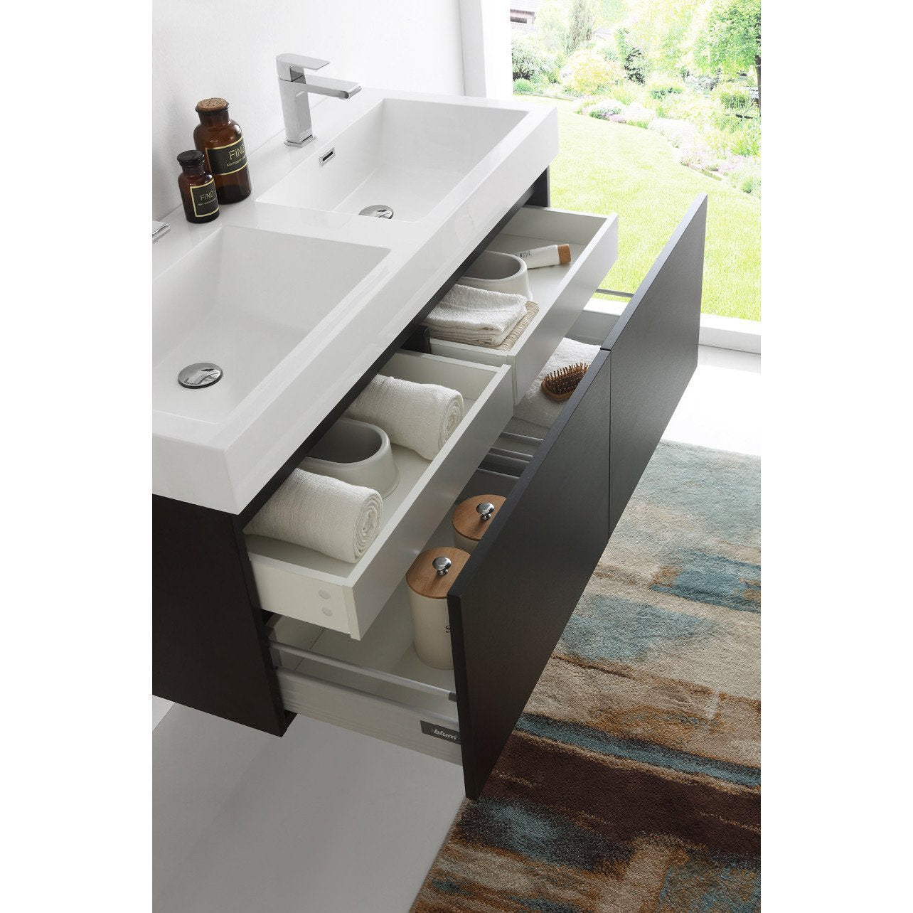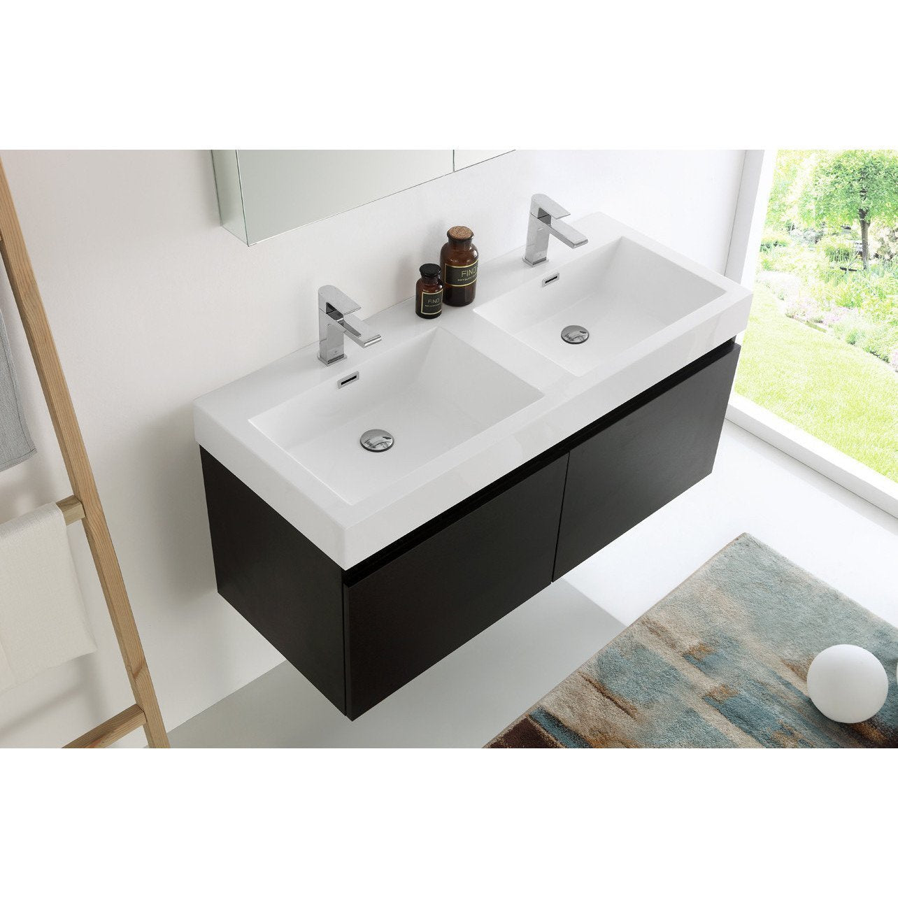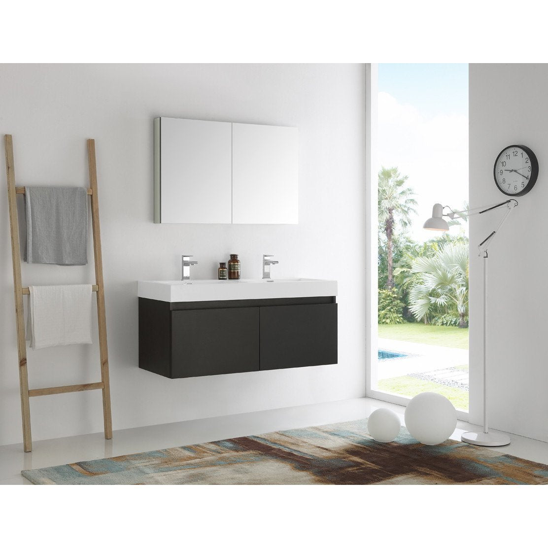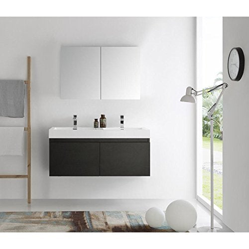 Fresca FVN8012BW Fresca Mezzo 48" Black Wall Hung Double Sink Modern Bathroom Vanity w/ Medicine Cabinet