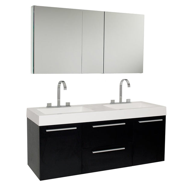 Fresca FVN8013BW Fresca Opulento 54" Black Modern Double Sink Bathroom Vanity w/ Medicine Cabinet