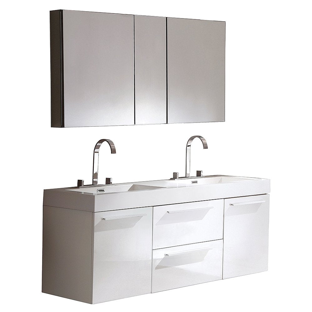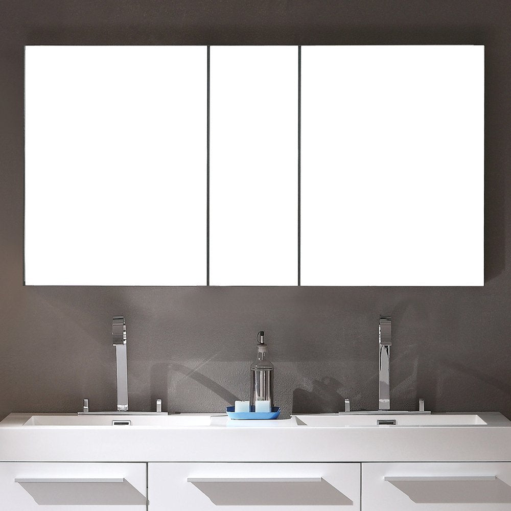 Fresca FVN8013WH Fresca Opulento 54" White Modern Double Sink Bathroom Vanity w/ Medicine Cabinet