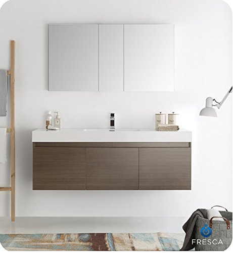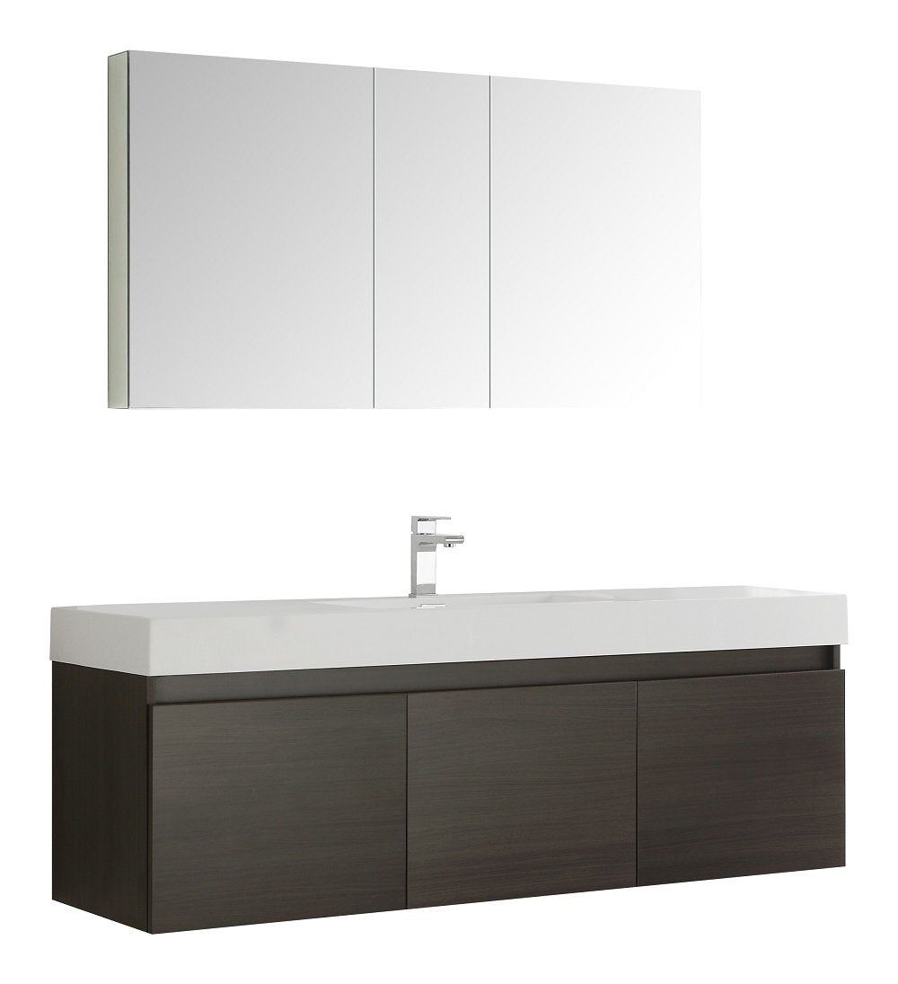 Fresca FVN8041GO Fresca Mezzo 60" Gray Oak Wall Hung Single Sink Modern Bathroom Vanity w/ Medicine Cabinet