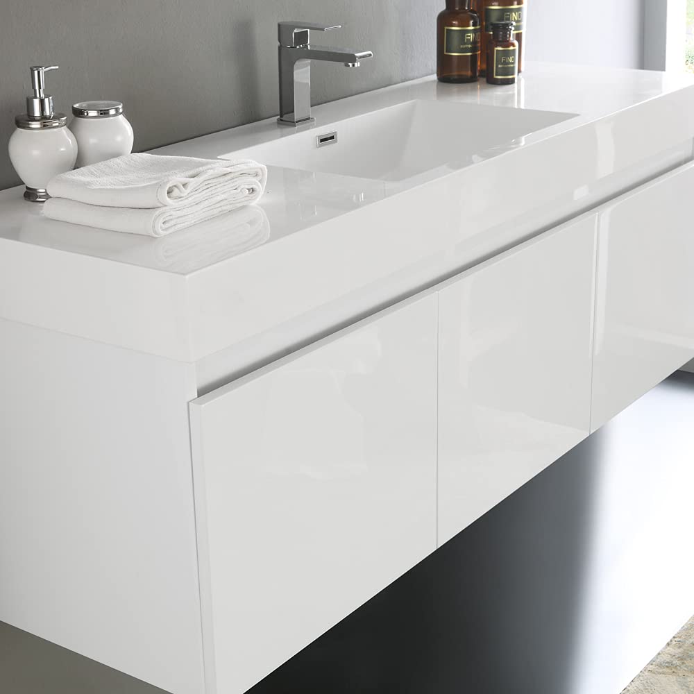 Fresca FVN8041WH Fresca Mezzo 60" White Wall Hung Single Sink Modern Bathroom Vanity w/ Medicine Cabinet