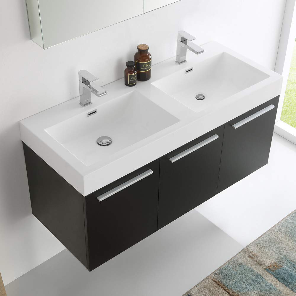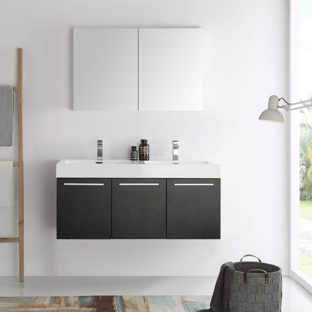 Fresca FVN8092BW-D Fresca Vista 48" Black Wall Hung Double Sink Modern Bathroom Vanity w/ Medicine Cabinet