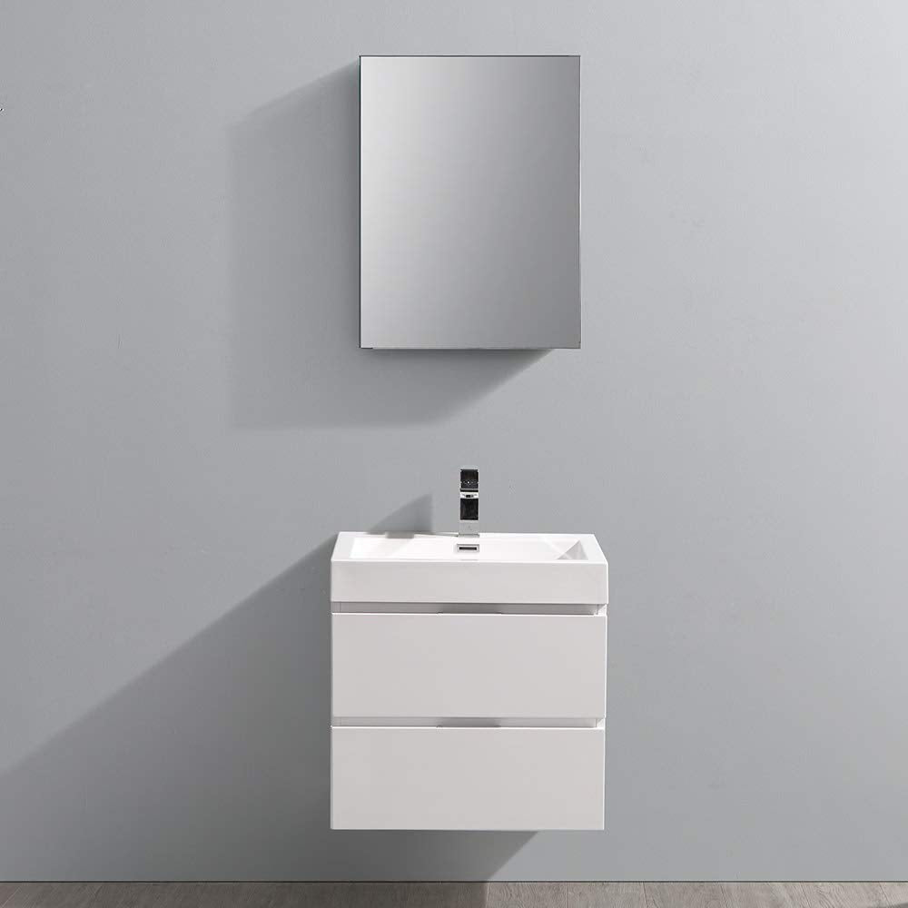 The Fresca Valencia Wall Hung Modern Bathroom Vanity with Medicine Cabinet comes with everything you need to create an elegant and modern bathroom. The rectangular vanity offers great storage with two soft-closing drawers, just perfect for organizing all of your daily essentials. The drawers feature concealed aluminum handles and the cabinet has a stylish Gray Oak finish. The white acrylic-resin countertop/sink has smooth lines and a thick profile. It is equipped with an overflow, single hole faucet mount and includes a solid brass faucet. This ensemble also comes with a fully mirrored 20 medicine cabinet with two adjustable glass shelves, to complete the look. This lovely vanity is available in multiple sizes and makes a stylish statement in any home.
