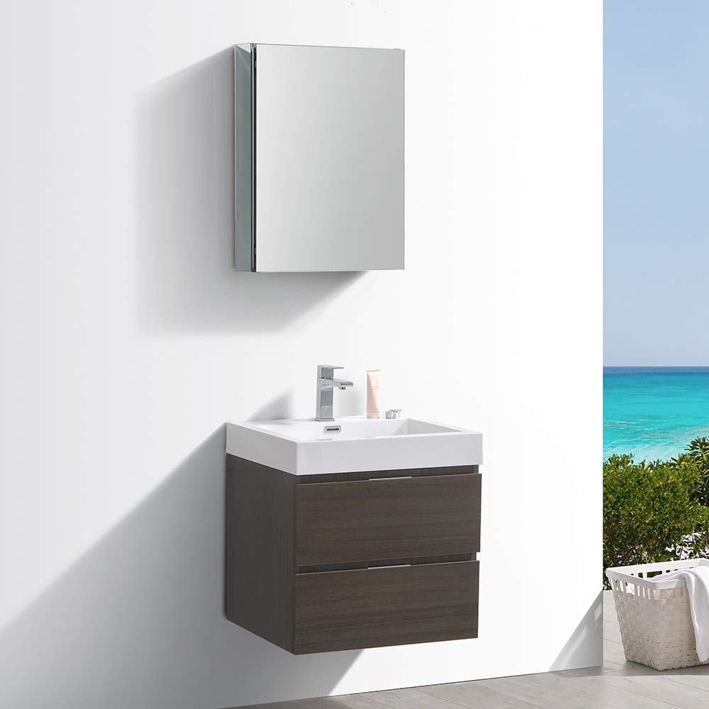 Fresca FVN8324GO Fresca Valencia 24" Gray Oak Wall Hung Modern Bathroom Vanity w/ Medicine Cabinet