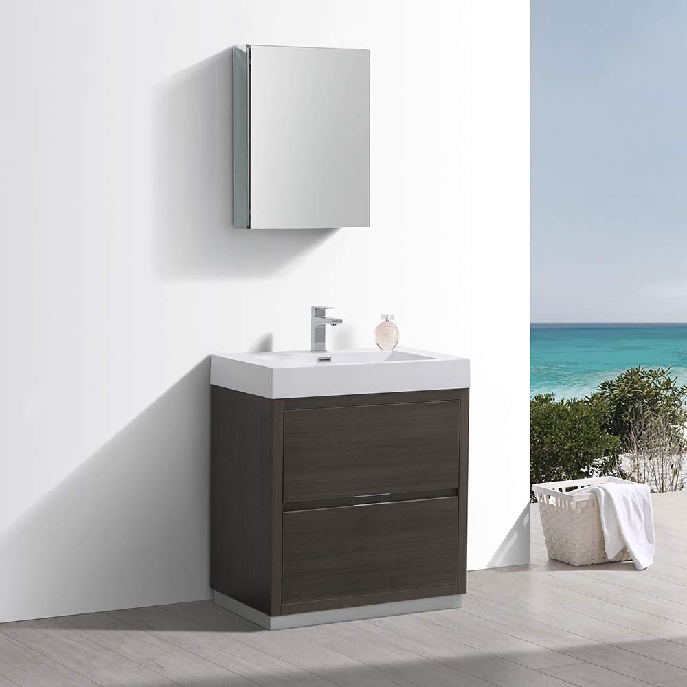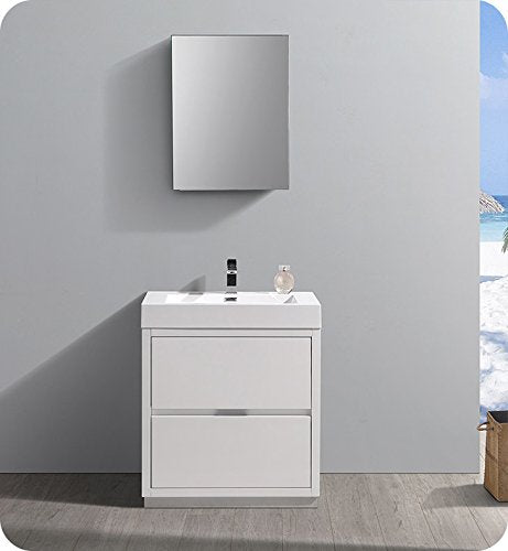 Fresca FVN8430WH Fresca Valencia 30" Glossy White Free Standing Modern Bathroom Vanity w/ Medicine Cabinet