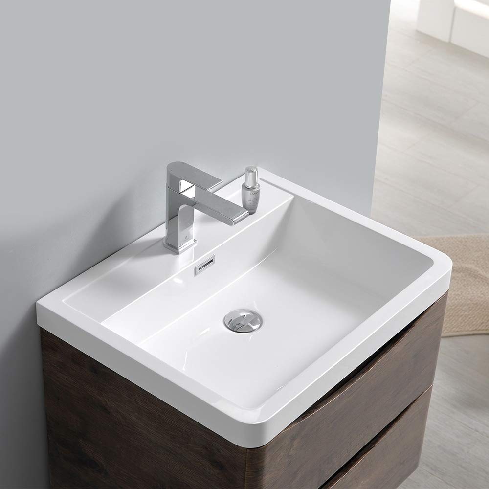 - Sink materials: Highly durable acrylic-resin sink with rimmed edge and integrated rectangular overflow