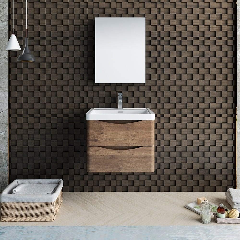 Fresca FVN9024RW Fresca Tuscany 24" Rosewood Wall Hung Modern Bathroom Vanity w/ Medicine Cabinet
