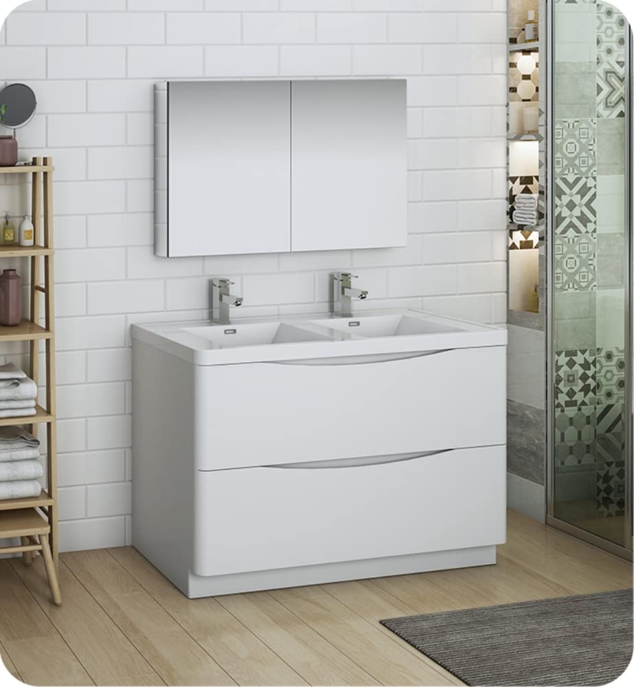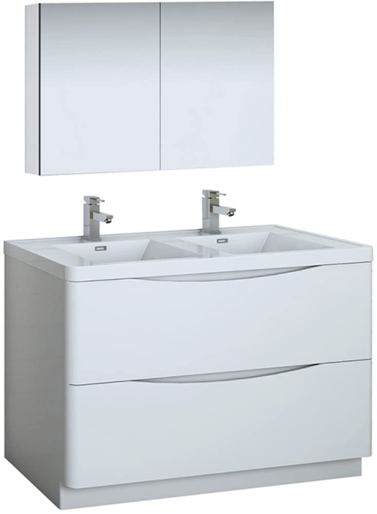 Fresca FVN9148WH-D Fresca Tuscany 48" Glossy White Free Standing Double Sink Modern Bathroom Vanity w/ Medicine Cabinet