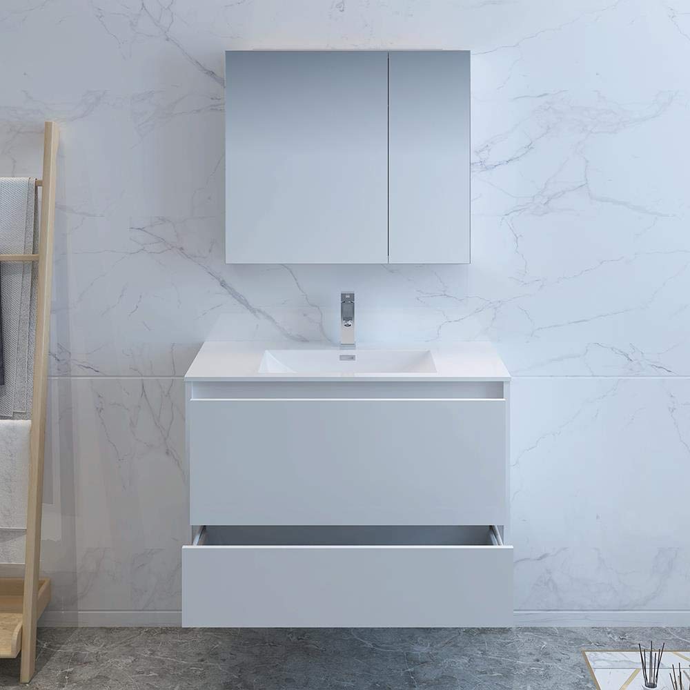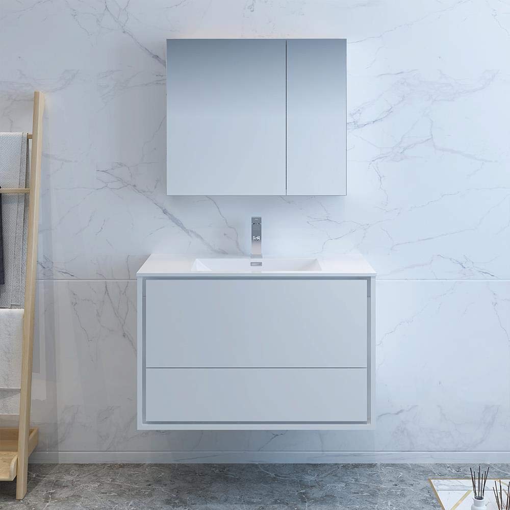 Fresca FVN9236WH Fresca Catania 36" Glossy White Wall Hung Modern Bathroom Vanity w/ Medicine Cabinet