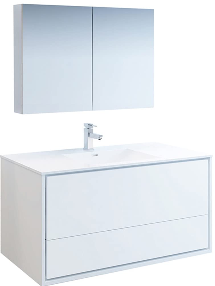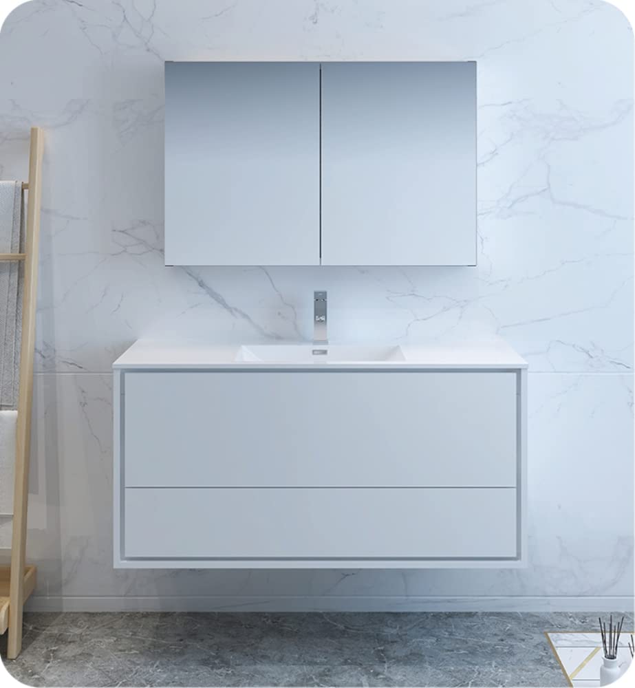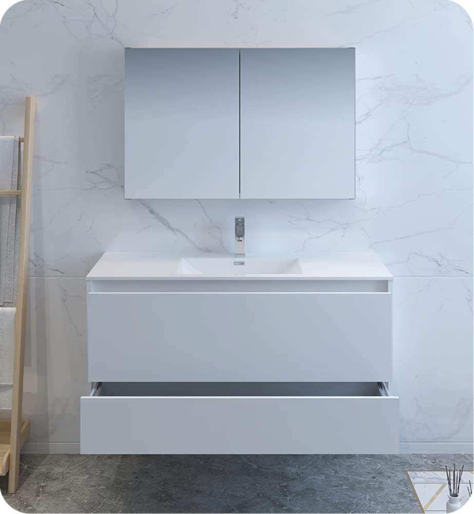 Fresca FVN9248WH Fresca Catania 48" Glossy White Wall Hung Modern Bathroom Vanity w/ Medicine Cabinet