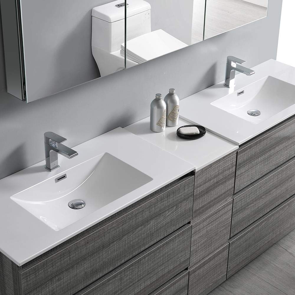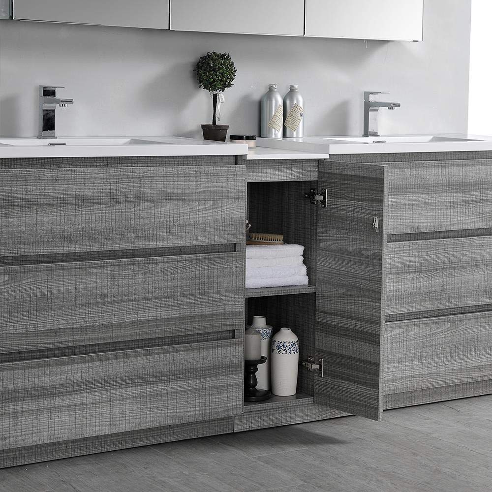 Fresca FVN93-361236HA-D Fresca Lazzaro 84" Glossy Ash Gray Free Standing Double Sink Modern Bathroom Vanity w/ Medicine Cabinet