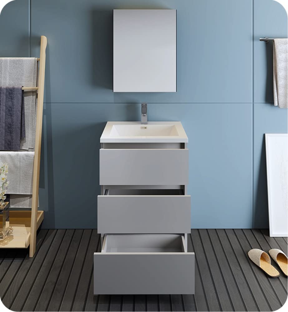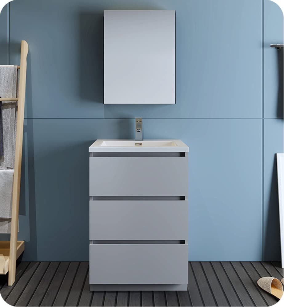 Fresca FVN9324GR Fresca Lazzaro 24" Gray Free Standing Modern Bathroom Vanity w/ Medicine Cabinet