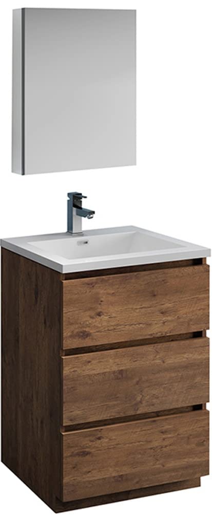Fresca FVN9324RW Fresca Lazzaro 24" Rosewood Free Standing Modern Bathroom Vanity w/ Medicine Cabinet