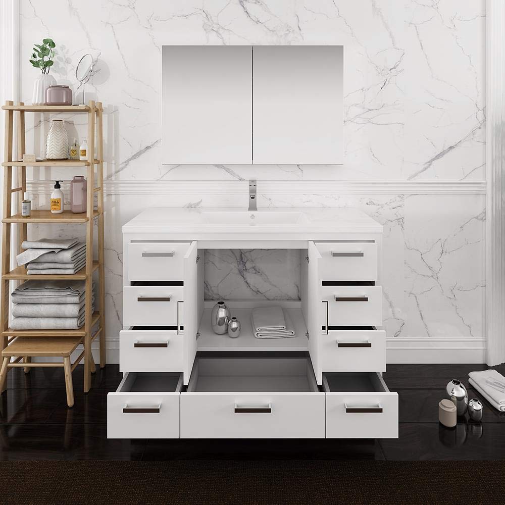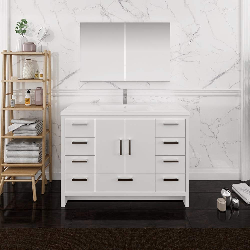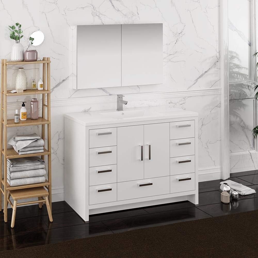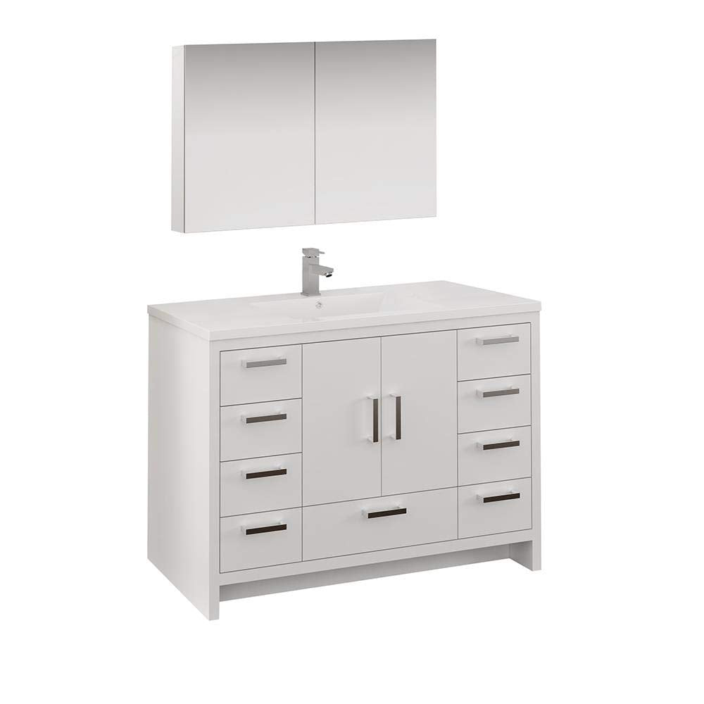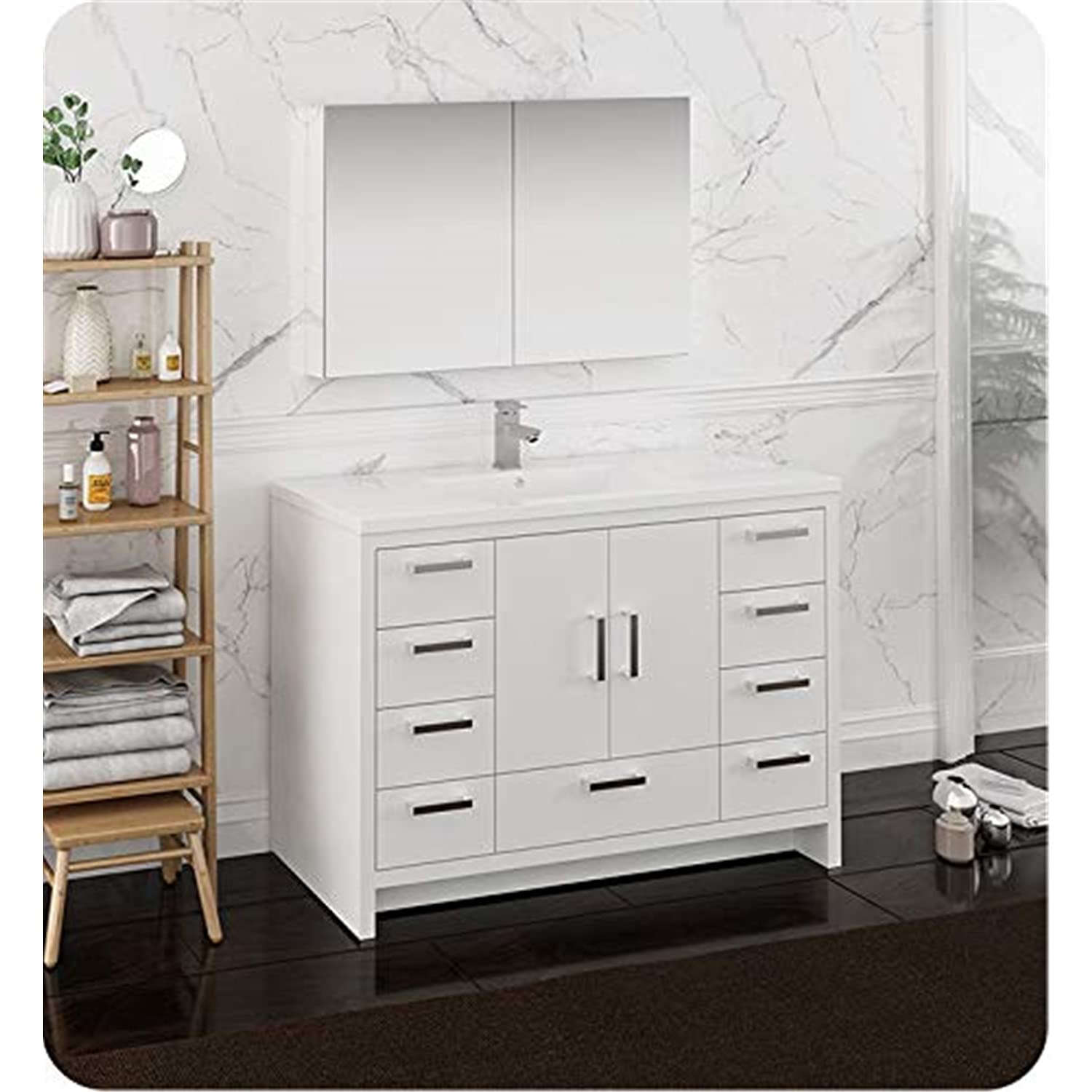 Fresca FVN9448WH Fresca Imperia 48" Glossy White Free Standing Modern Bathroom Vanity w/ Medicine Cabinet