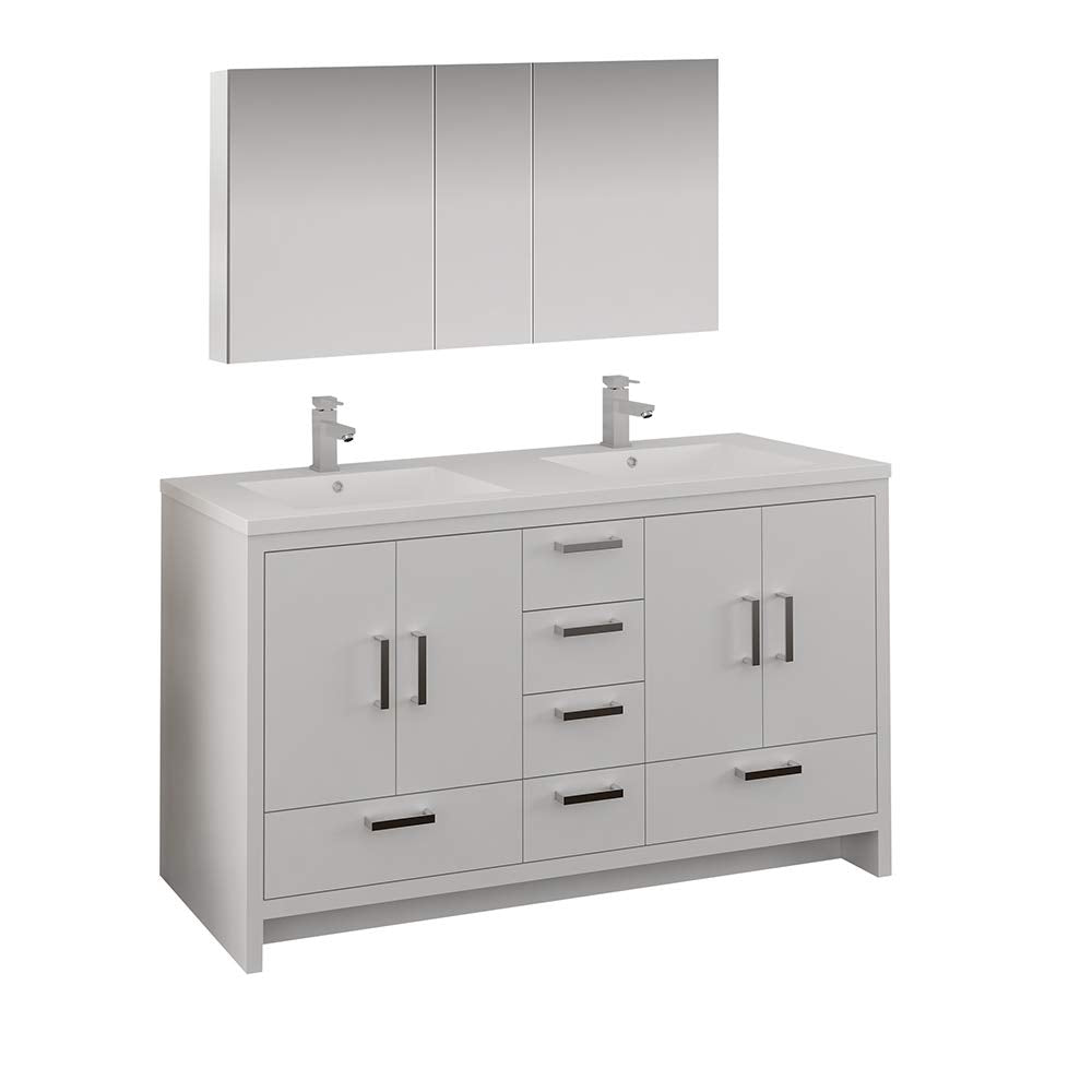 Fresca FVN9460WH-D Fresca Imperia 60" Glossy White Free Standing Double Sink Modern Bathroom Vanity w/ Medicine Cabinet