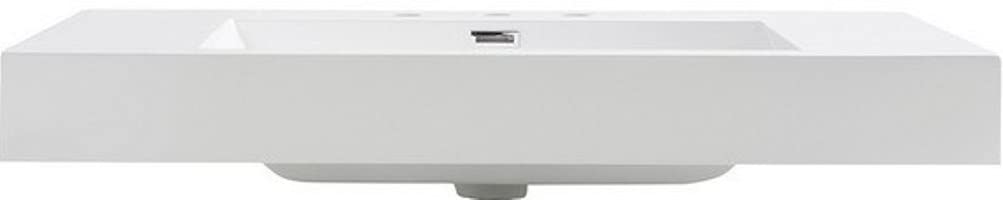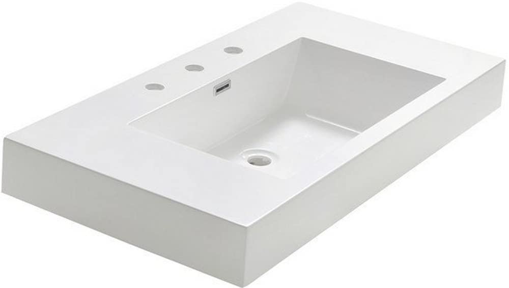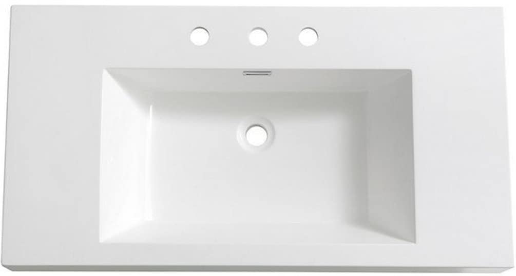 You know youve found the perfect sink when the bathroom becomes your favorite room in the house. This gorgeous contemporary sink has a sleek and chic rectangular shape. The contemporary linear design features sharp, clean lines and a thick, smooth profile. On the inside of the basin, the smooth flowing contours capture attention while making clean up a breeze. This White integrated sink and countertop will give your space a sleek, streamlined look. The Fresca Vista design features a widespread faucet mount (8") and sink overflow.