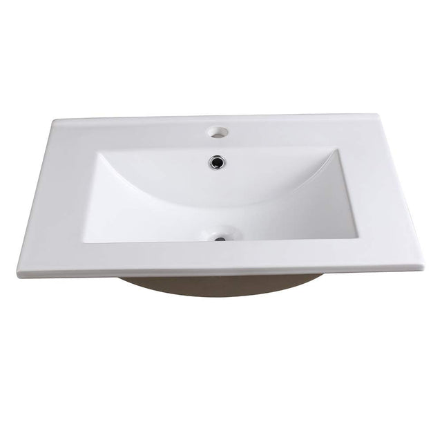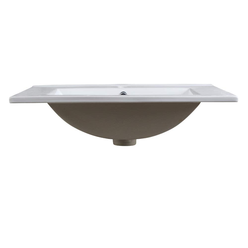 This classic ceramic integrated sink and countertop with overflow would look marvelous in a traditional or contemporary setting. The cool white ceramic, coupled with the clean rectangular shape has universal appeal and adds a fresh touch to any space. This Fresca Allier integrated sink and countertop is available in a variety of sizes, to perfectly accommodate any bathroom design. This particular integrated sink and countertop measures 24 in width.