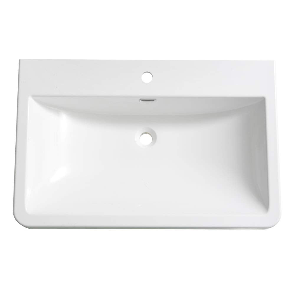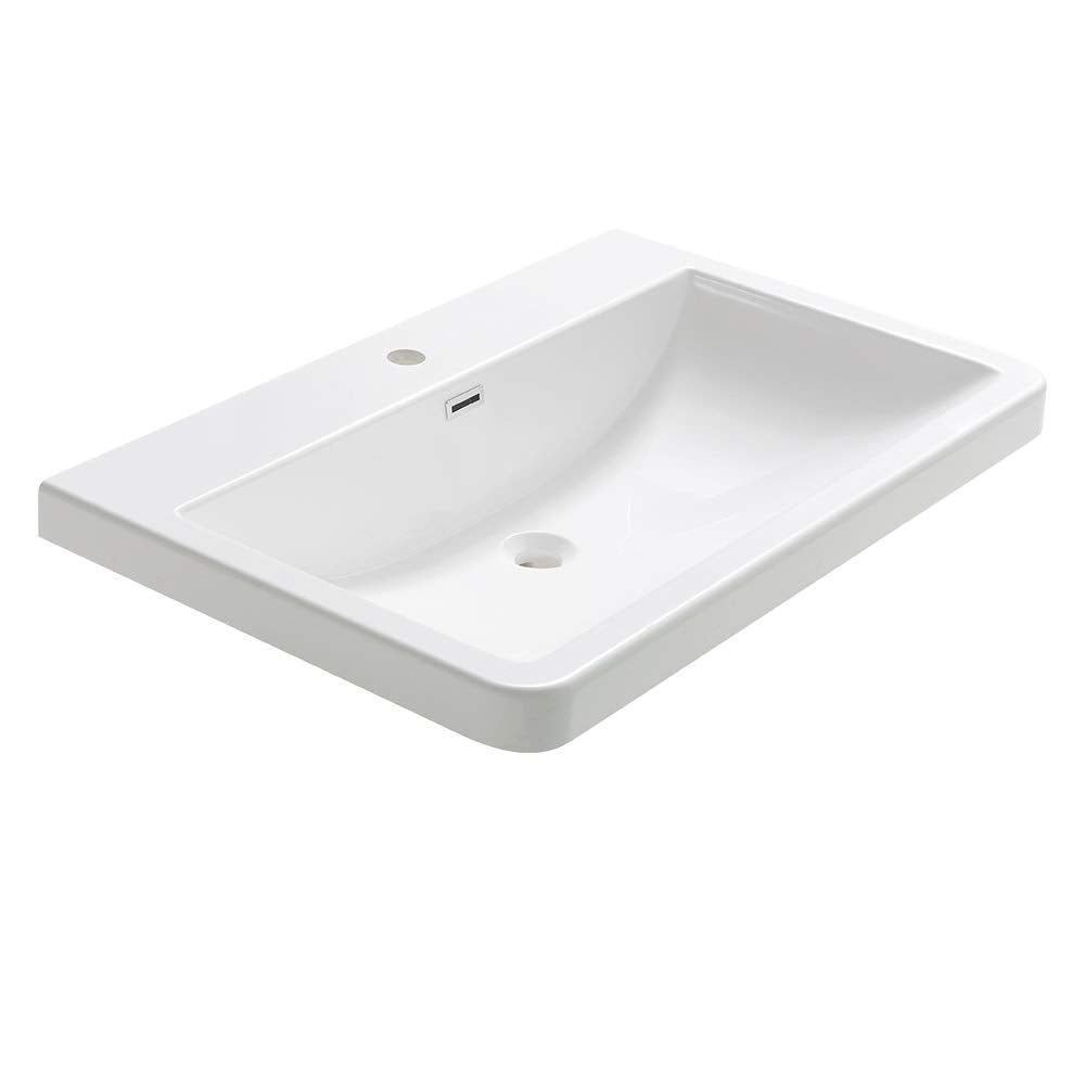 Elegant fixtures like this Fresca Milano integrated sink and countertop truly demonstrate the shape of things to come in bathroom décor. This gorgeous sink has an oversized basin and provides a clean, bold element that will elevate your bathrooms wow factor. It has a lovely rim around the basin and features a single hole faucet mount. This White integrated sink and countertop measures 32 in width and is also available in 26.