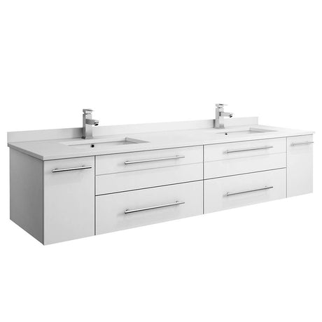 Regular price $1,09995UnavailableIn stock online (21 Units)Fresca FCB6172WH-UNS Fresca Lucera 72" White Wall Hung Double Undermount...