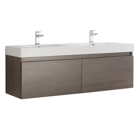 Regular price $77200UnavailableIn stock online (10 Units)Fresca FCB8042GO-I Fresca Mezzo 60" Gray Oak Wall Hung Double Sink Moder...
