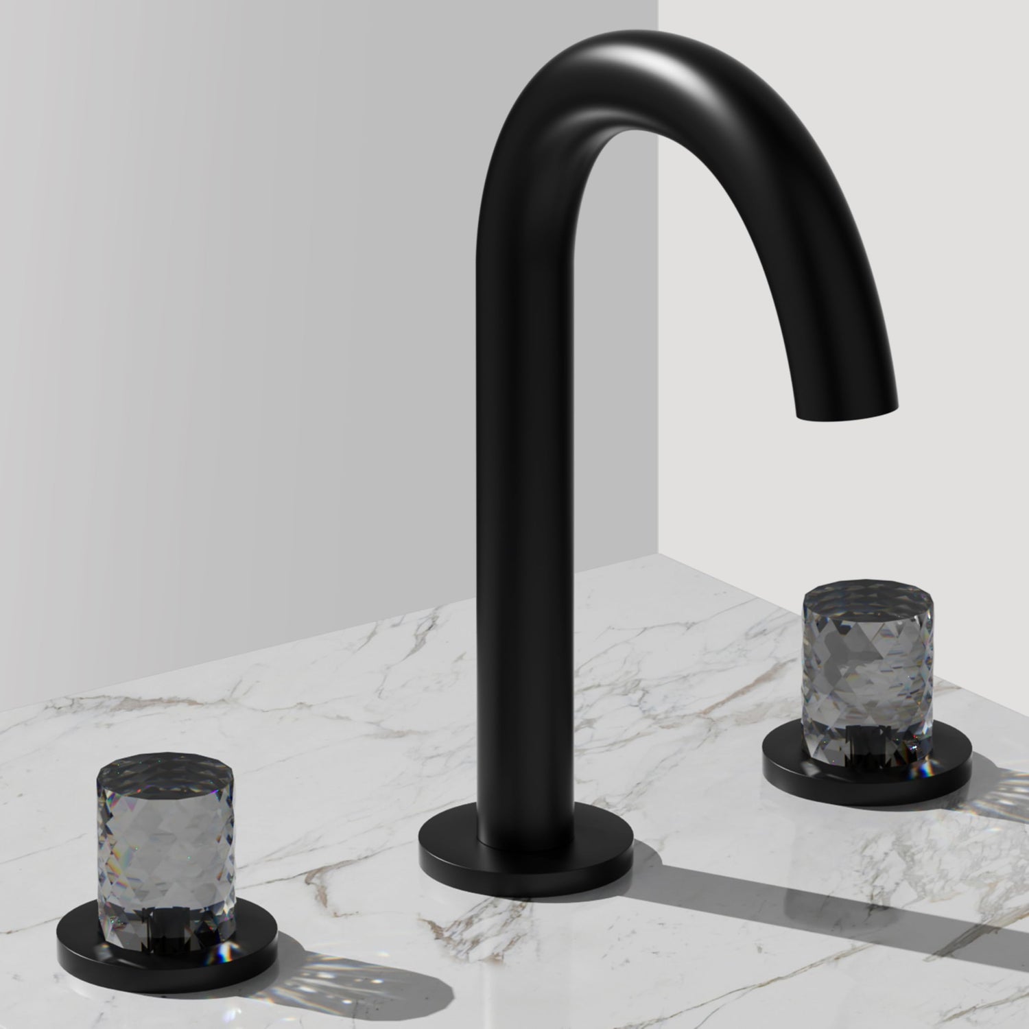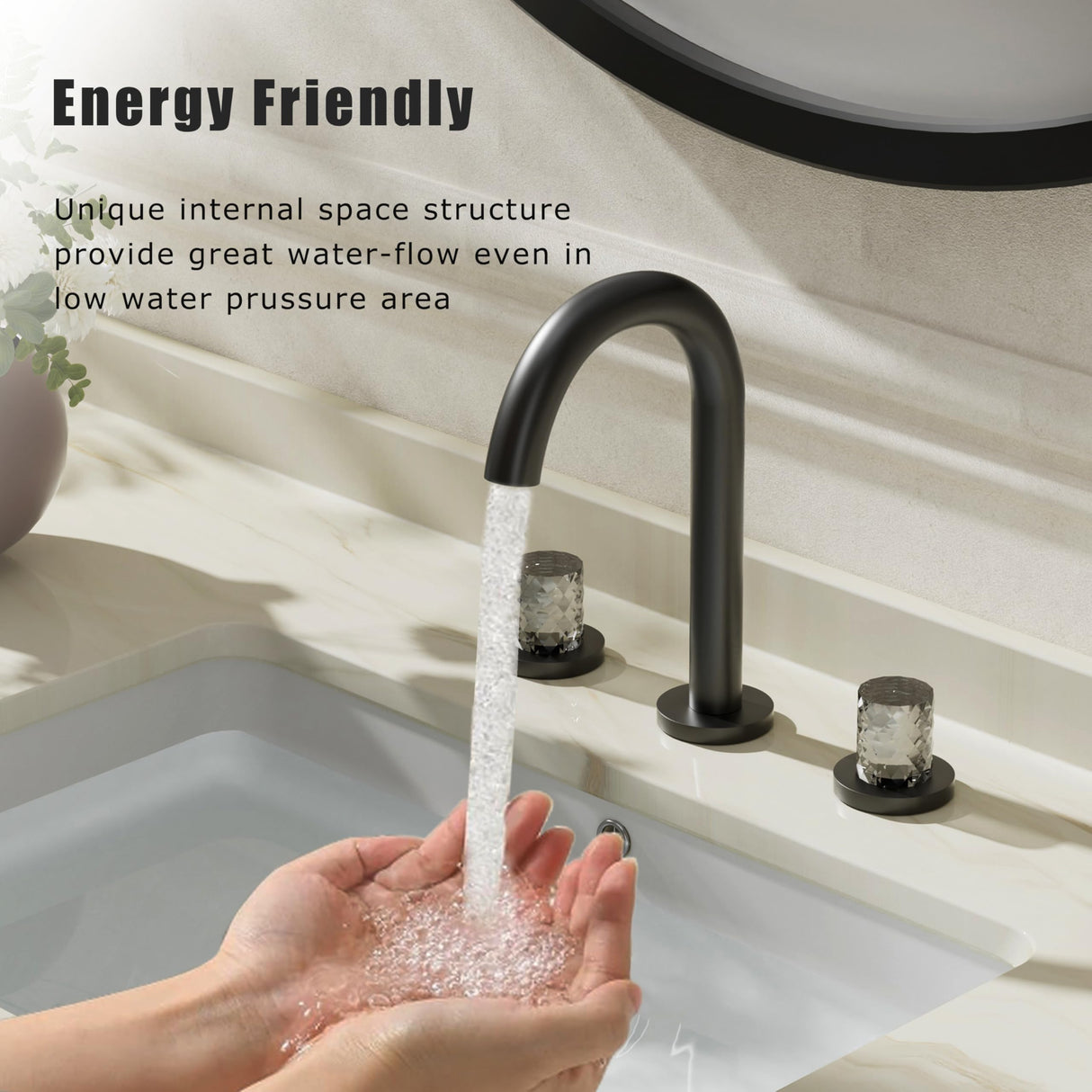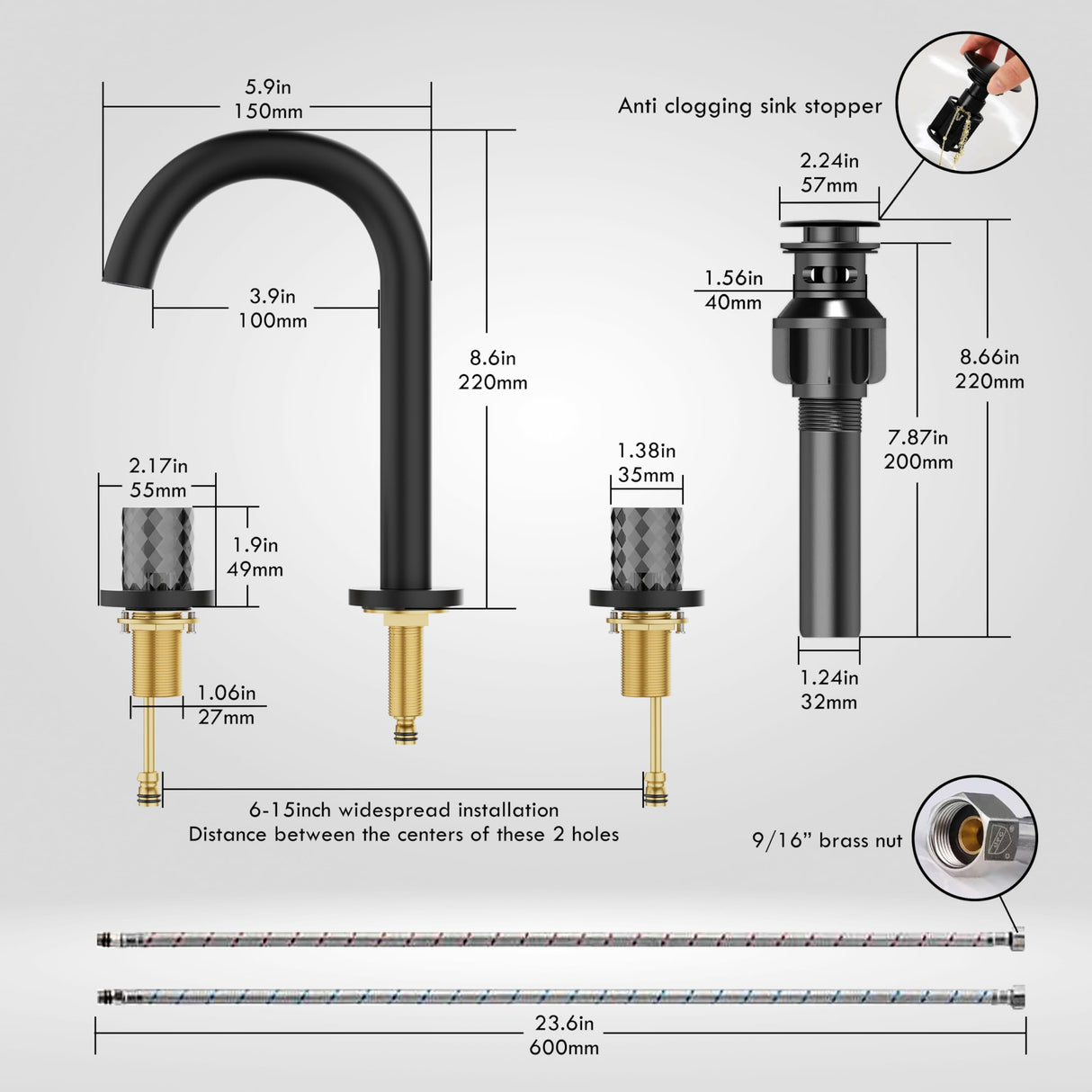 Bathroom Sink Faucet 3 Hole, 8 Inch Widespread Bathroom Faucets, Sink Faucet Black with Pop-up Drain & Hose