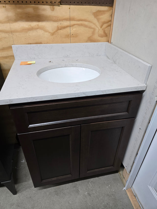 28" Dark Wood Corner Vanity with Custom Marble Top