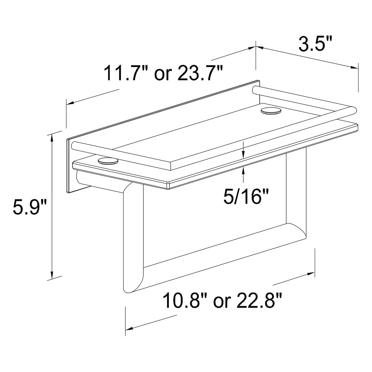Ginger Surface 12" Tempered Glass Bathroom Shelf with Towel Bar - 2819RT-12/PC - Polished Chrome