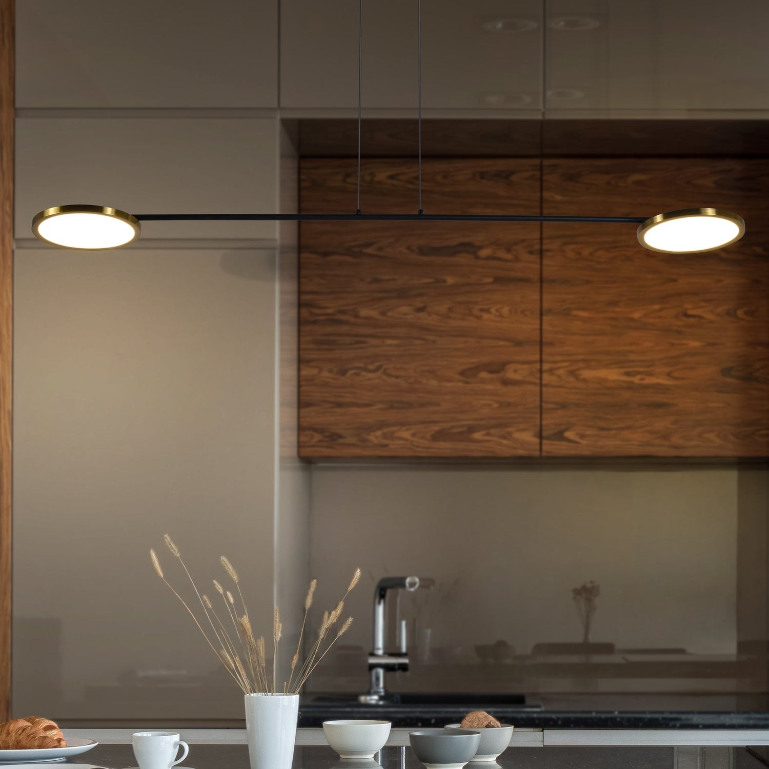 VONN Artisan Torino VAP2192AB 39" Integrated LED ETL Certified Height Adjustable Pendant, Rotating Disks, Antique Brass