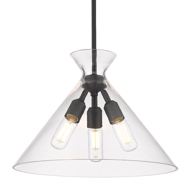 Malta 3 Light Pendant in Matte Black & Clear Glass