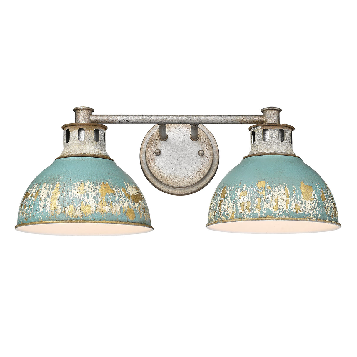 Kinsley 2 Light Bath Vanity in Aged Galvanized Steel with Antique Teal Shade