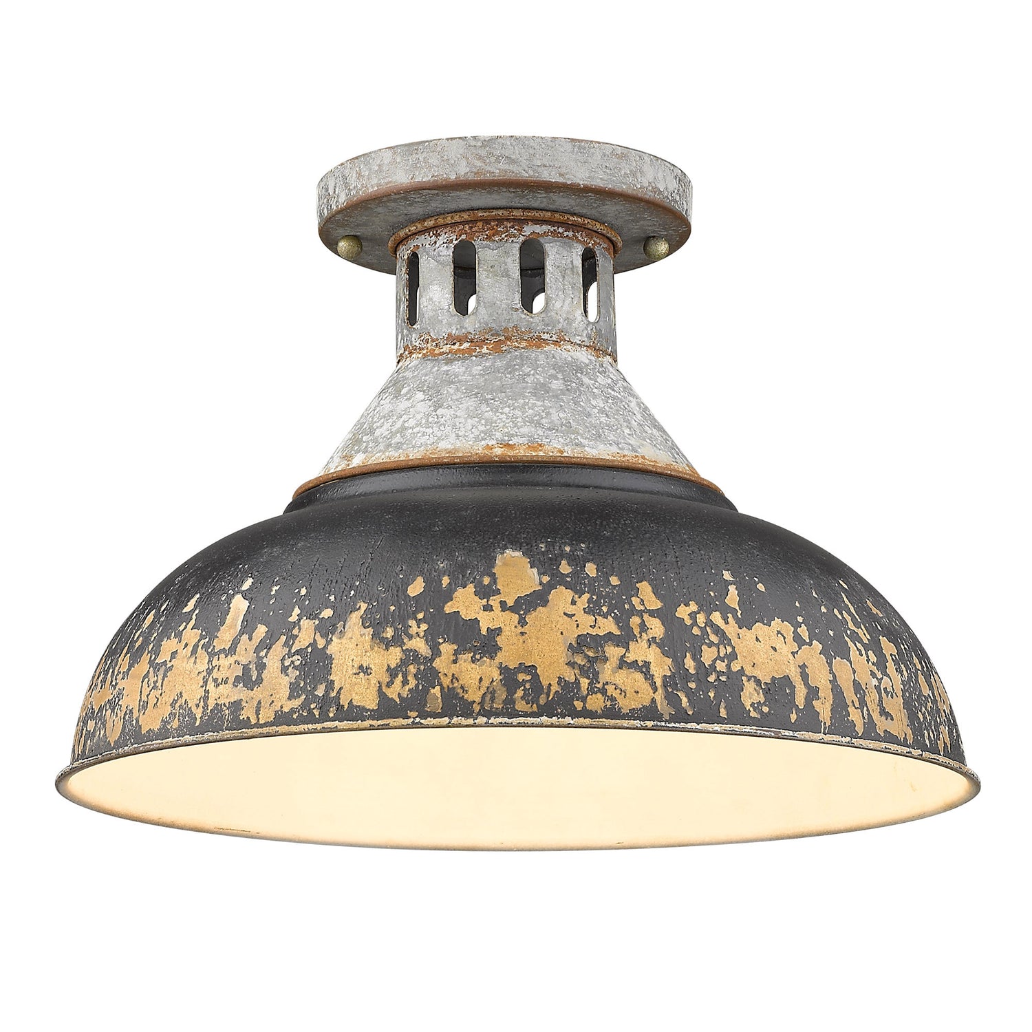 Kinsley Semi-Flush in Aged Galvanized Steel with Antique Black Iron Shade
