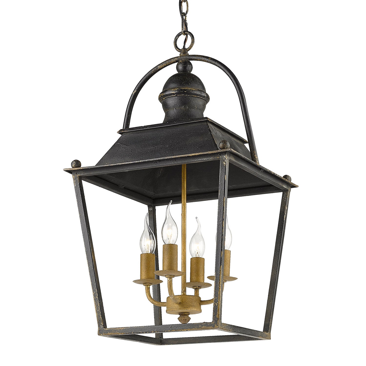 The transitional look of the Christoff collection works well with industrial and farmhouse styles. Details showcase the hand-forged artisan metalwork of these hand-crafted fixtures. Rusty accents of gold can be found peeking through the Antique Black Iron finish on the open-cage frame and sweeping candelabras. These details reinforce the industrial or vintage-inspired aesthetic. This eye-catching four-light pendant is sized perfectly for small foyers and cozy dining rooms.