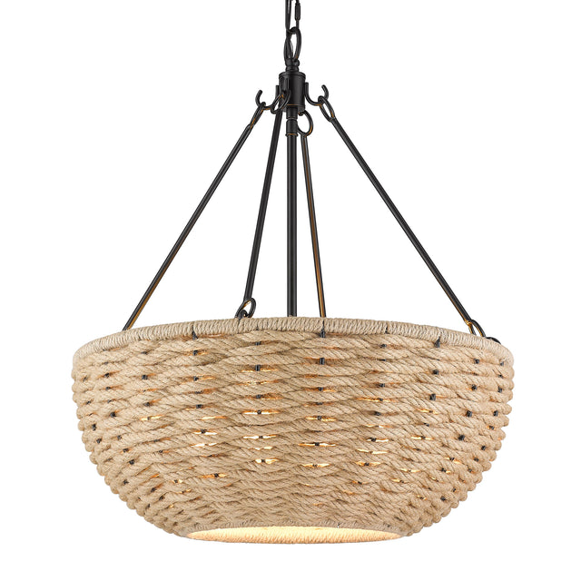Add casual, country-cottage flair to your space with Hathaway. Thick natural fiber rope (composed of Woven Hemp Rope) is interlaced in a woven fashion to create a basket shade. A smooth, matte black finish creates visual contrast. Great for task lighting, bright downlight spills from the open-bottom shade.