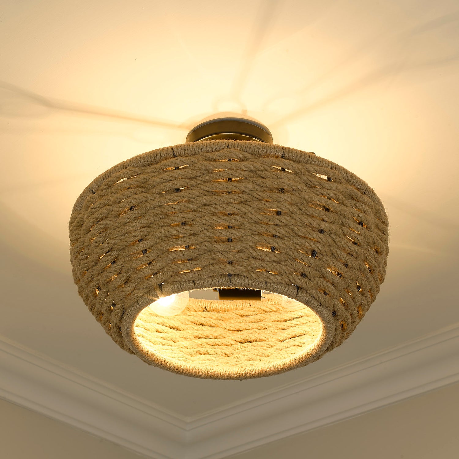 Add casual, country-cottage flair to your space with Hathaway. Thick natural fiber rope (composed of Woven Hemp Rope) is interlaced in a woven fashion to create a basket shade. A smooth, matte black finish creates visual contrast. Great for task lighting, bright downlight spills from the open-bottom shade.