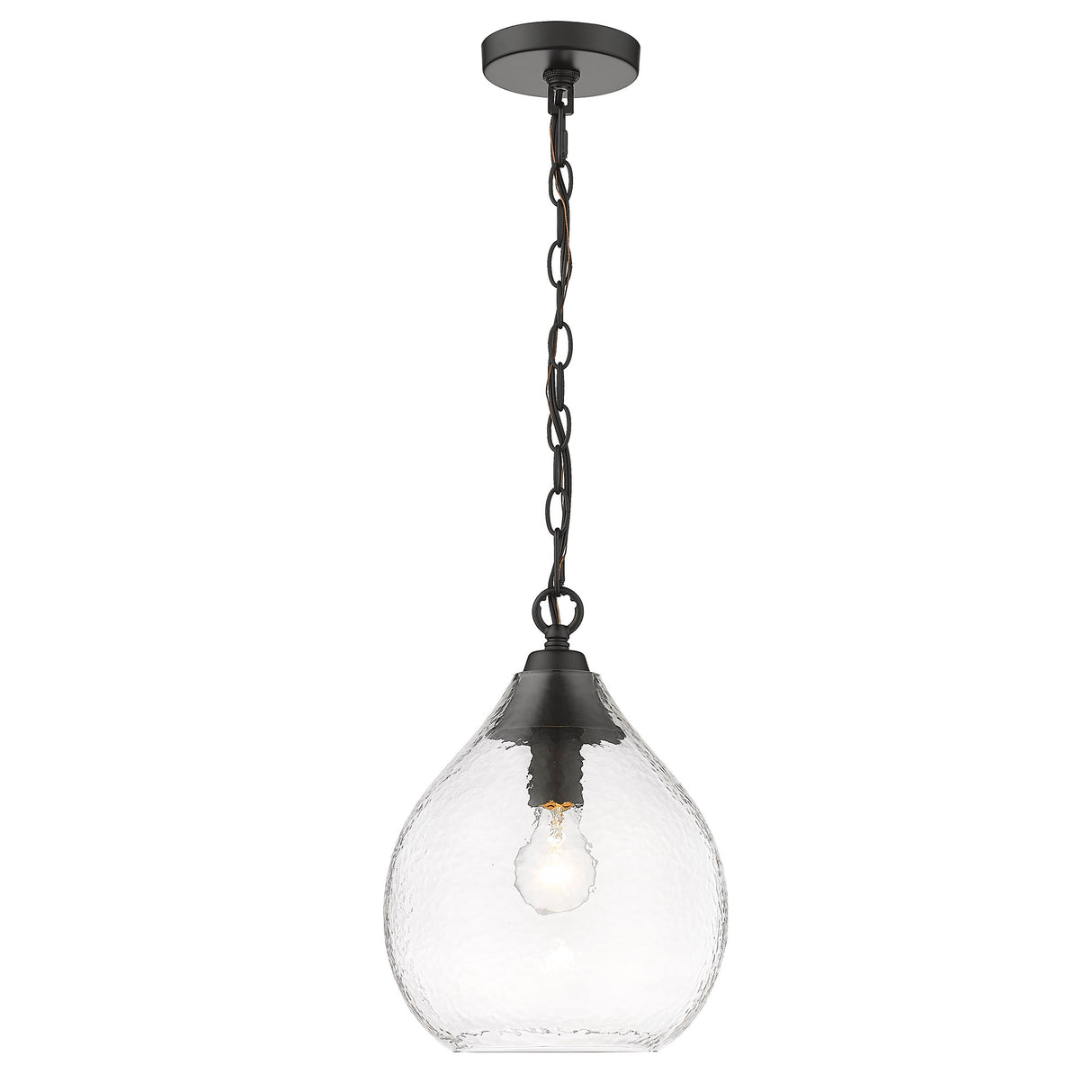 Ariella Small Pendant in Matte Black with Hammered Clear Glass
