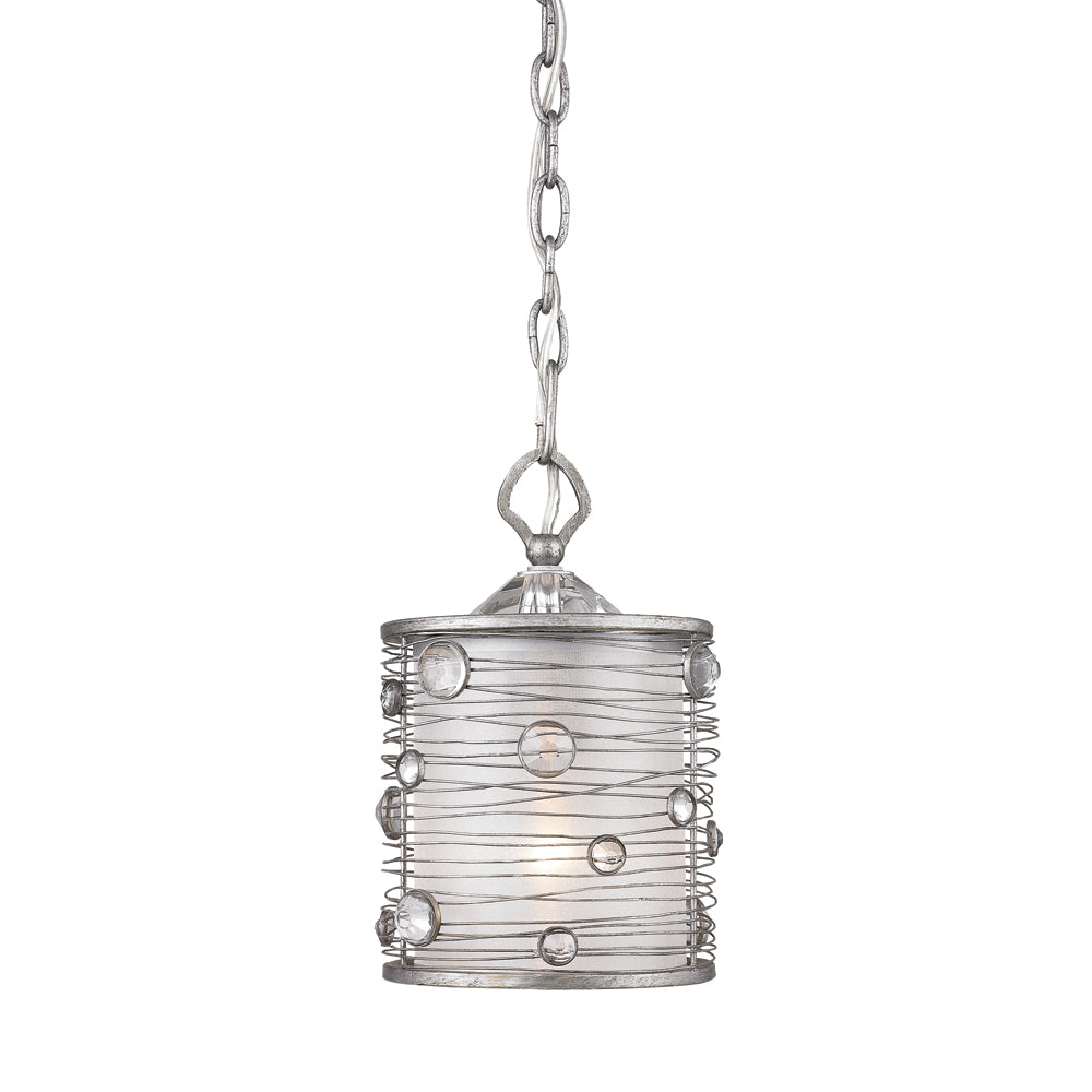 The Joia collection was inspired by jewelry. Transitional in style, the fixtures are ideal for eclectic and contemporary room decors. The collection is offered in multiple hand-painted finishes. The hand-wrapped wire frames are accented with crystals that glisten when lit. A fabric shade romantically diffuses the light. This mini pendant is an eye-catching accent that can be used alone or arrayed in a group. Ideal for the kitchen, the mini pendant provides soft ambient downlight, illuminating a kitchen bar or countertop without interfering with activity on the surface.