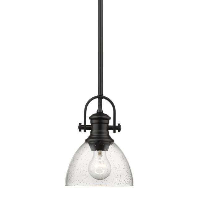 Hines Mini Pendant in Matte Black with Seeded Glass