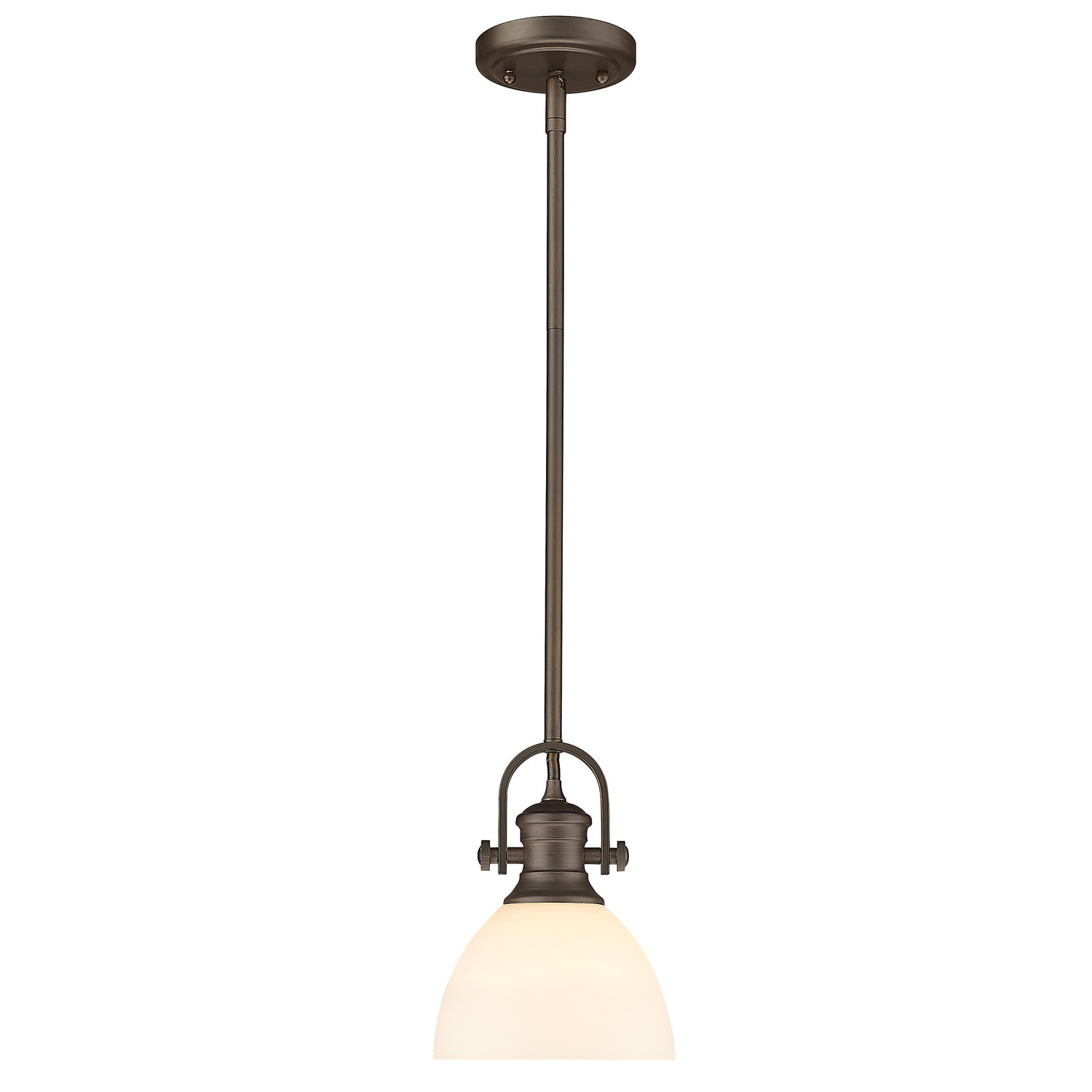 Hines Mini Pendant in Rubbed Bronze with Opal Glass