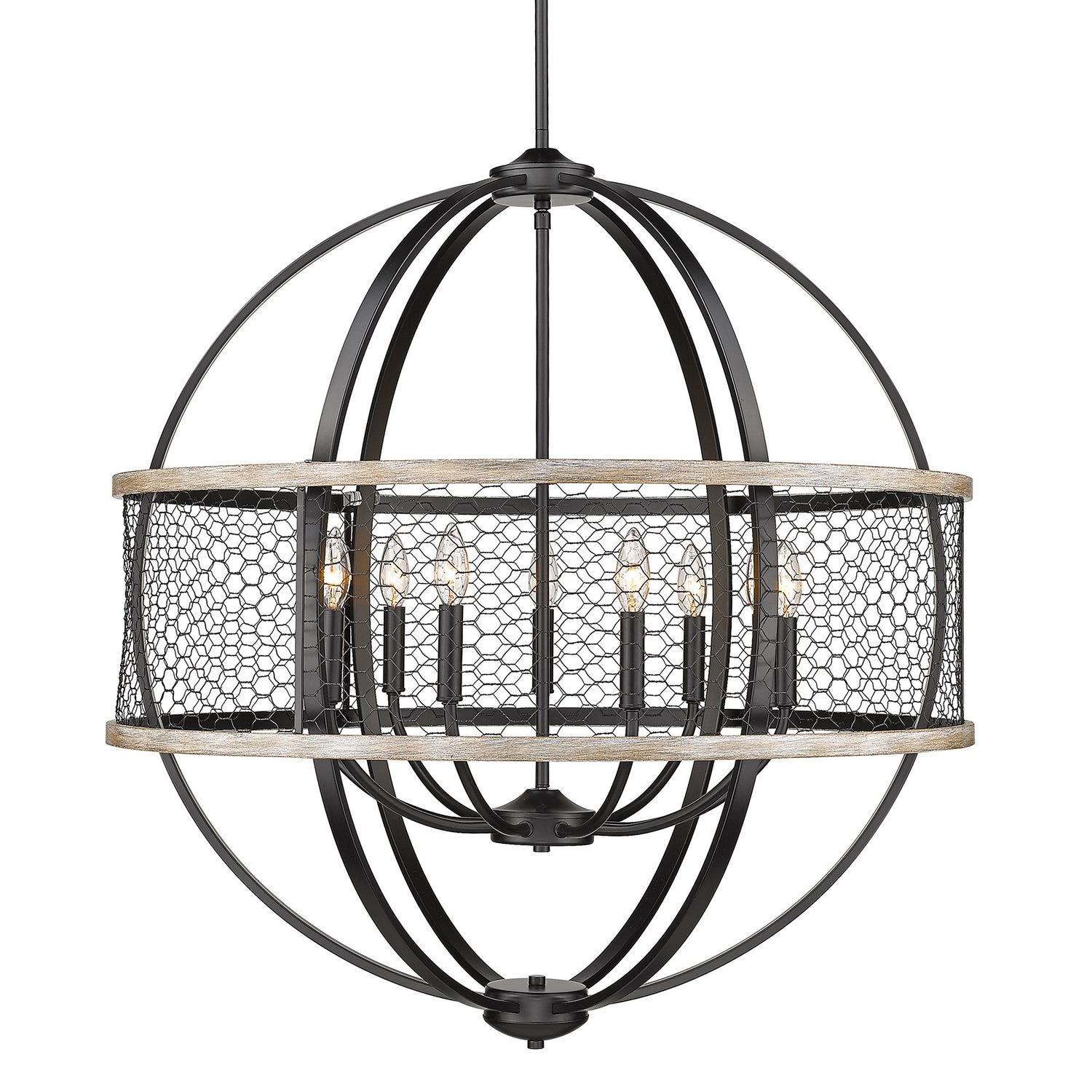 The Roost collection brings casual, rustic styling to any space. On-trend with modern country home design, the design is perfect to hang in rooms with farmhouse décor. The style works equally well with vintage-inspired decors, rooms with antique accents, and even bistro kitchens. Sturdy, sophisticated metal frames are curved to create an organic silhouette. Loosely wrapped mesh chicken wire shades allow widespread light to fill a room. This 9-light chandelier is sized comfortably for foyers and grand rooms.