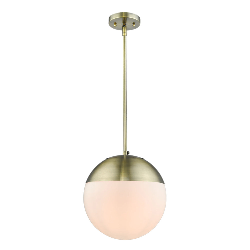 Dixon Pendant in Aged Brass with Opal Glass and Aged Brass Cap