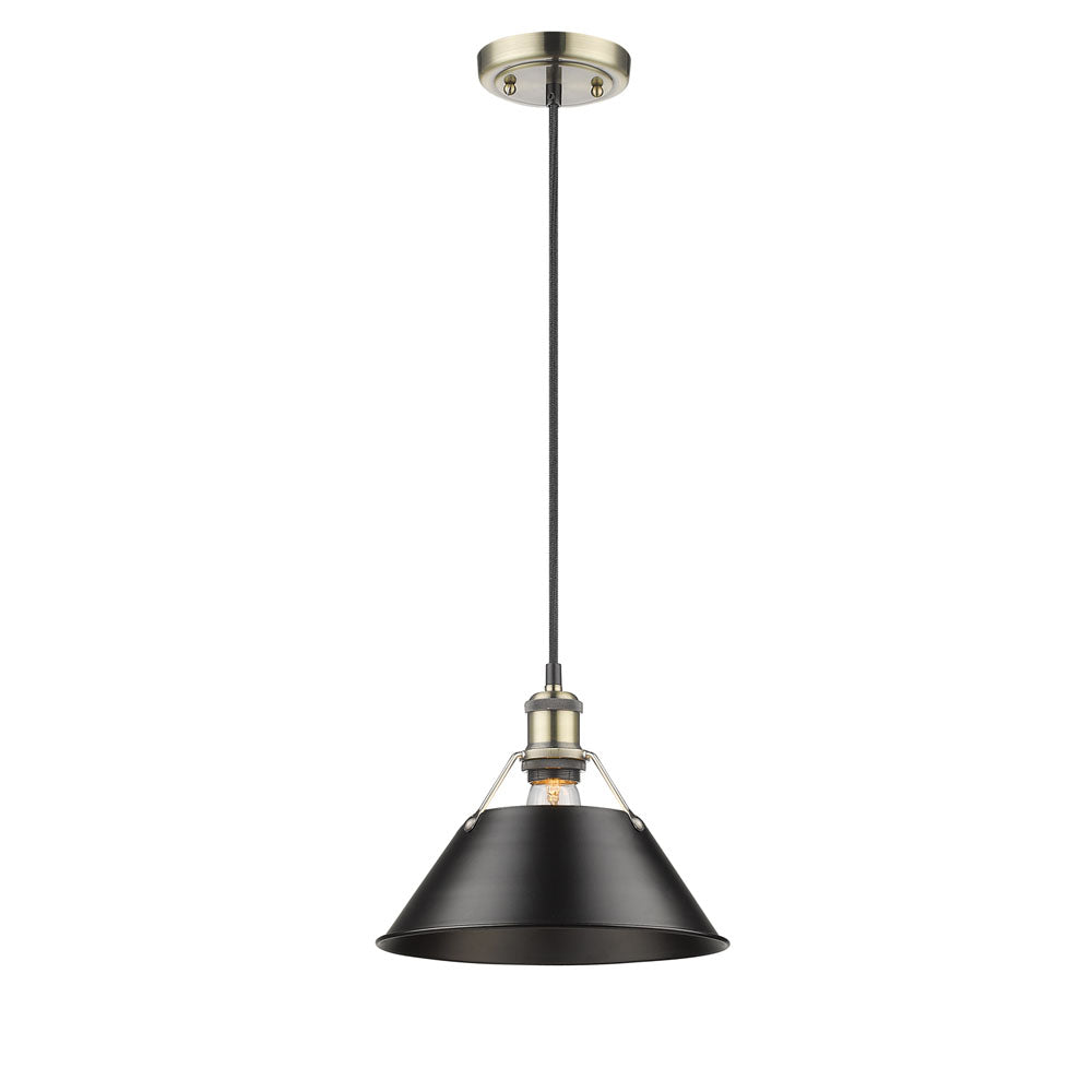 Orwell AB 1 Light Pendant - 10" in Aged Brass with Matte Black Shade