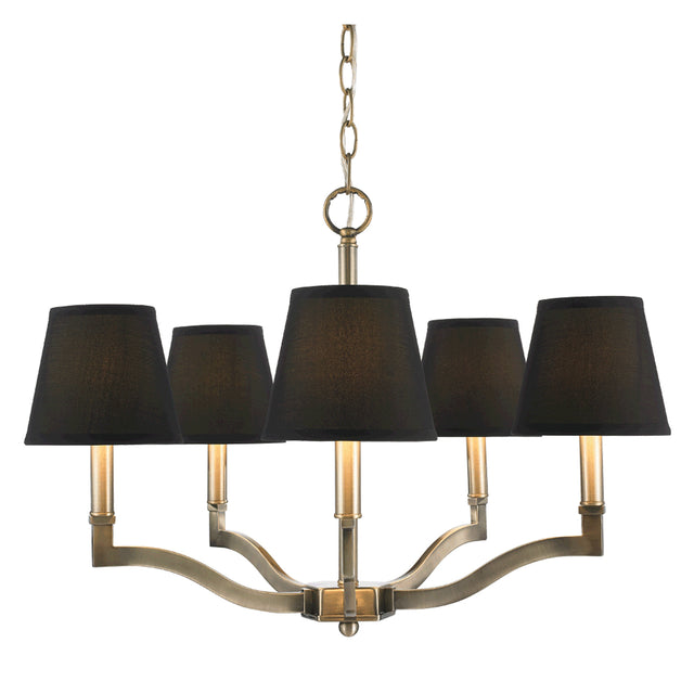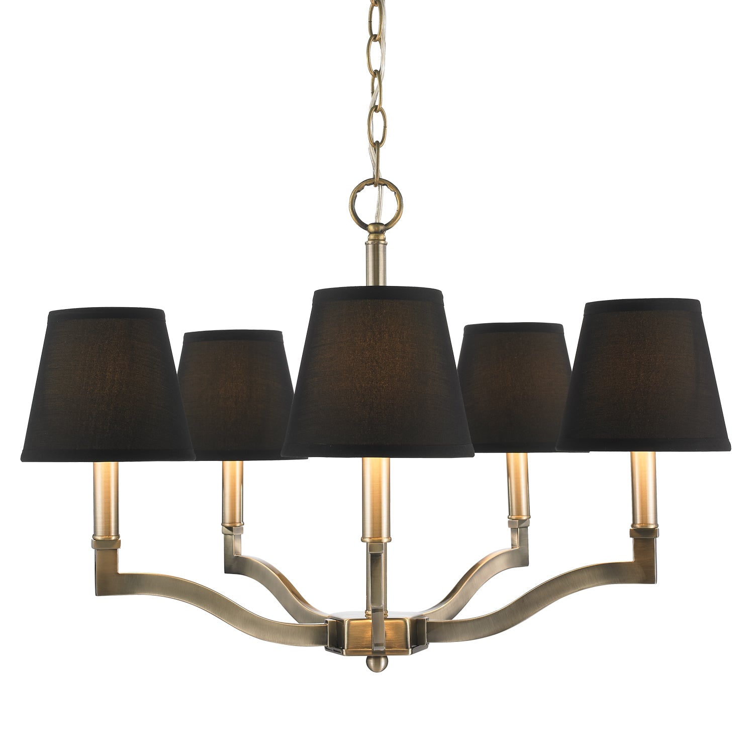 Waverly 5 Light Chandelier in Aged Brass with Tuxedo Shade