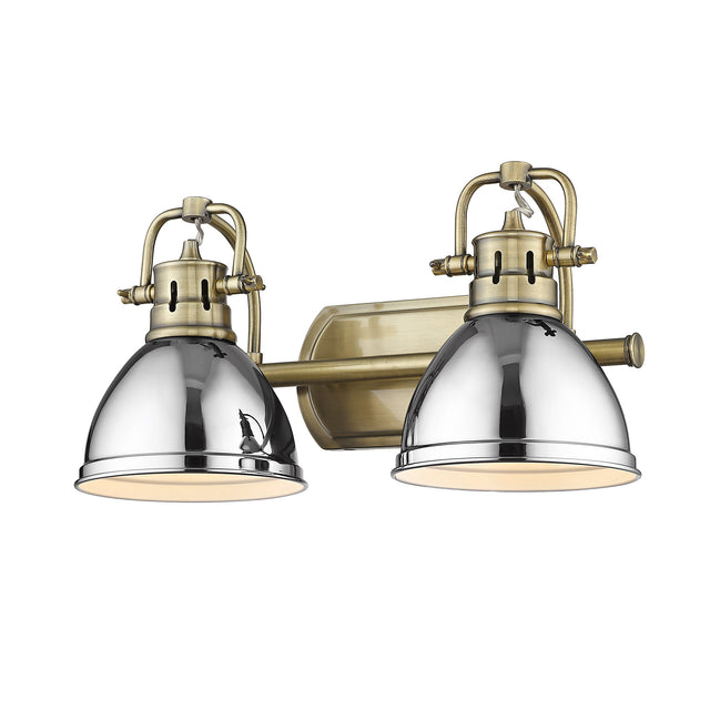 Duncan 2 Light Bath Vanity in Aged Brass with Chrome Shades