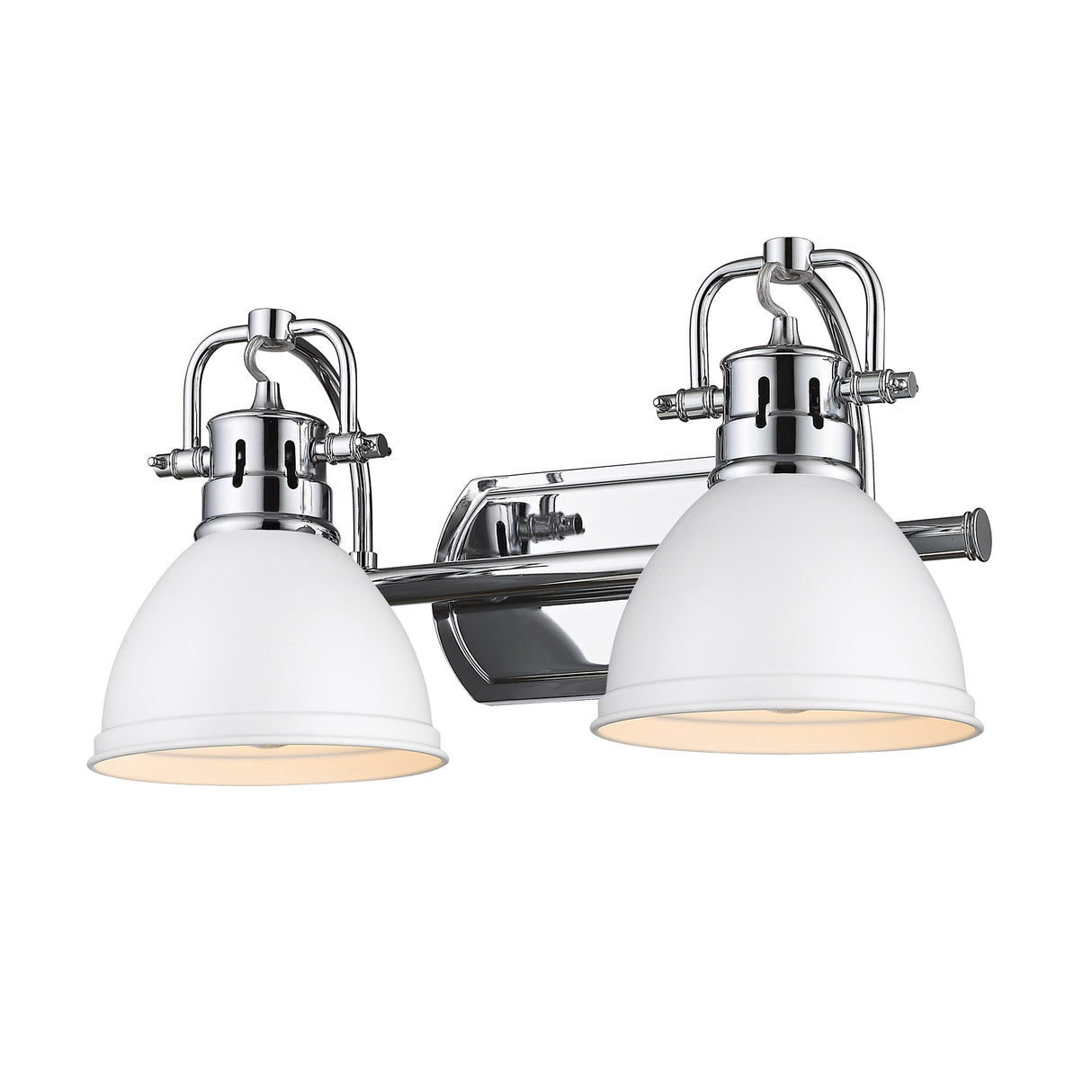 Duncan 2 Light Bath Vanity in Chrome with Matte White Shades