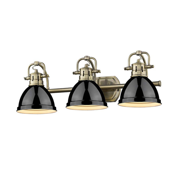 Duncan 3 Light Bath Vanity in Aged Brass with a Black Shade