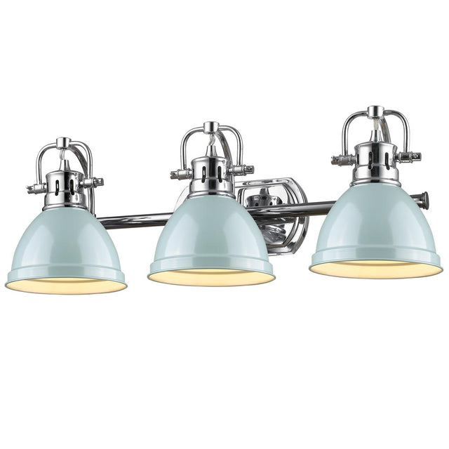 Duncan 3 Light Bath Vanity in Chrome with a Seafoam Shade